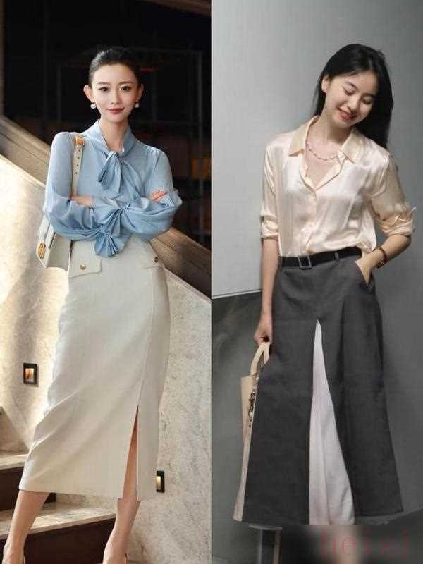 以前提起真絲,很多人第一反應(yīng)是“嬌貴難打理”“顯老氣”,但今年春天的真絲上衣徹底顛覆了這個印象。首先得夸夸材質(zhì)升級——現(xiàn)在的真絲面料更輕薄抗皺了,像參考里提到的“天絲、三醋酸”等透氣材質(zhì),搭配真絲做拼接,既保留了絲滑觸感,又解決了靜電和易皺的痛點,早上隨手抓起來套上,出門一整天都挺括。
