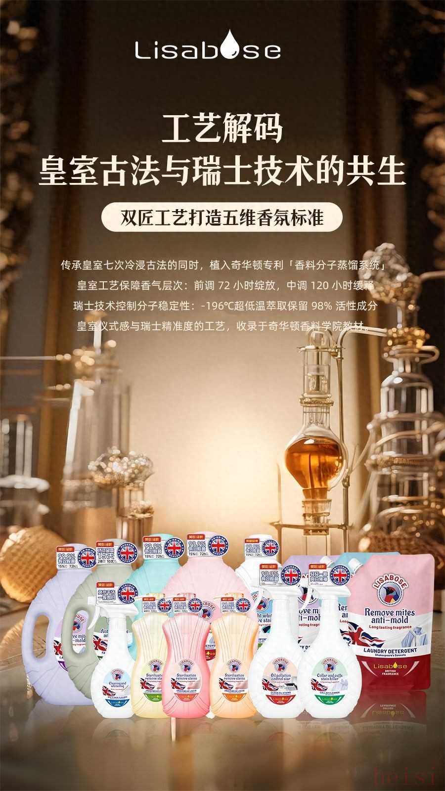 本網(wǎng)訊(王芳 編輯)當(dāng)傳統(tǒng)家清產(chǎn)品還在比拼“去污力”時(shí),這個(gè)來自英國(guó)的品牌,正用一瓶洗衣液重新定義“嗅覺經(jīng)濟(jì)”。Lisabose的基因里刻著“極致”二字。源自英國(guó)皇家化學(xué)學(xué)會(huì)的科研底蘊(yùn),使其擁有納米級(jí)酵素、3D靶向潔凈網(wǎng)等23項(xiàng)專利技術(shù);與瑞士奇華頓香料學(xué)院的深度合作,則讓每款產(chǎn)品都成為“可穿戴的香水藝術(shù)品”。
