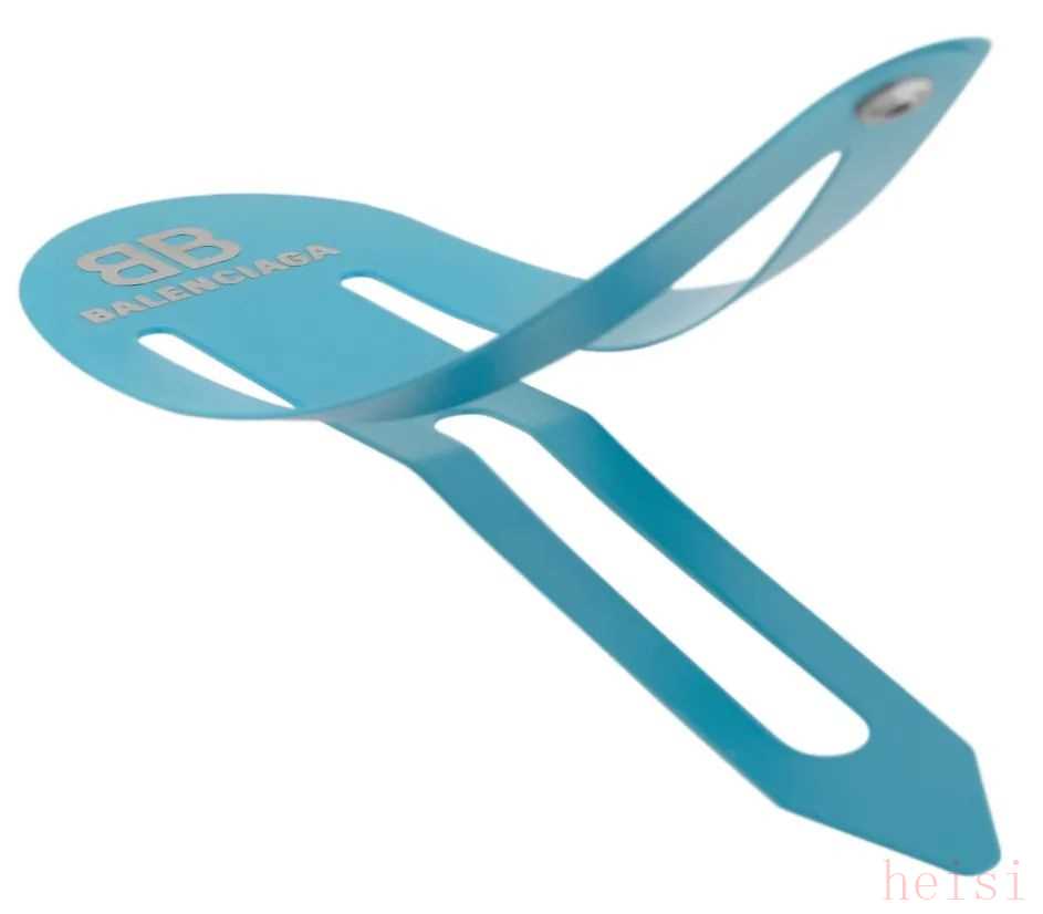 官網(wǎng)介紹稱,該款發(fā)卡尺寸長9.9cm、高0.7cm、寬0.2cm,材質(zhì)為不銹鋼,上面印有“BB Balenciaga標(biāo)識”。