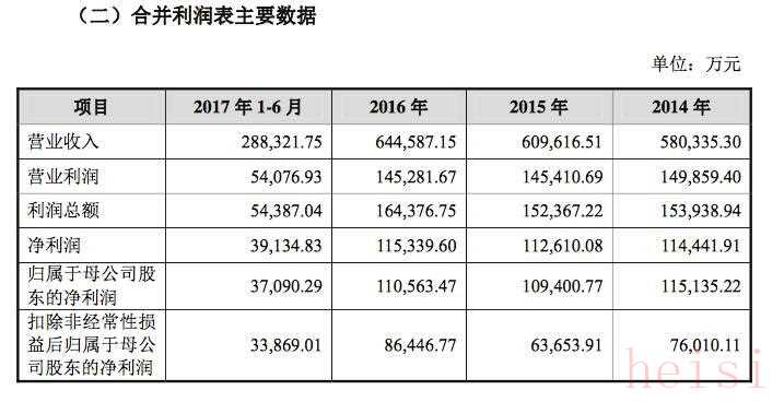 據(jù)招股說(shuō)明書(shū)顯示,赫基在2016年的營(yíng)業(yè)收入為64.46億元,歸屬于母公司股東的凈利潤(rùn)為11.06億元;2017年1-6月則分別為28.83億元和3.71億元。