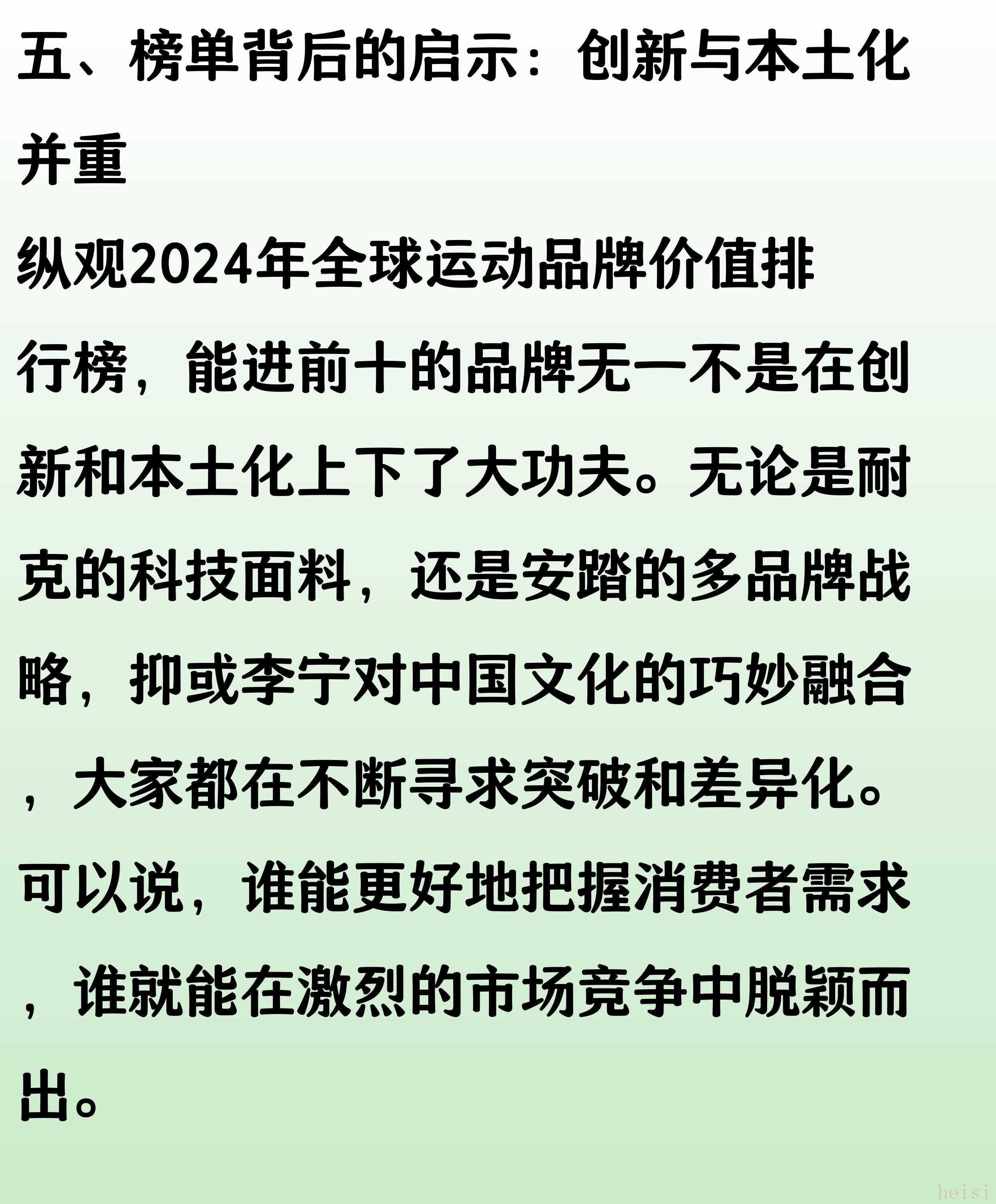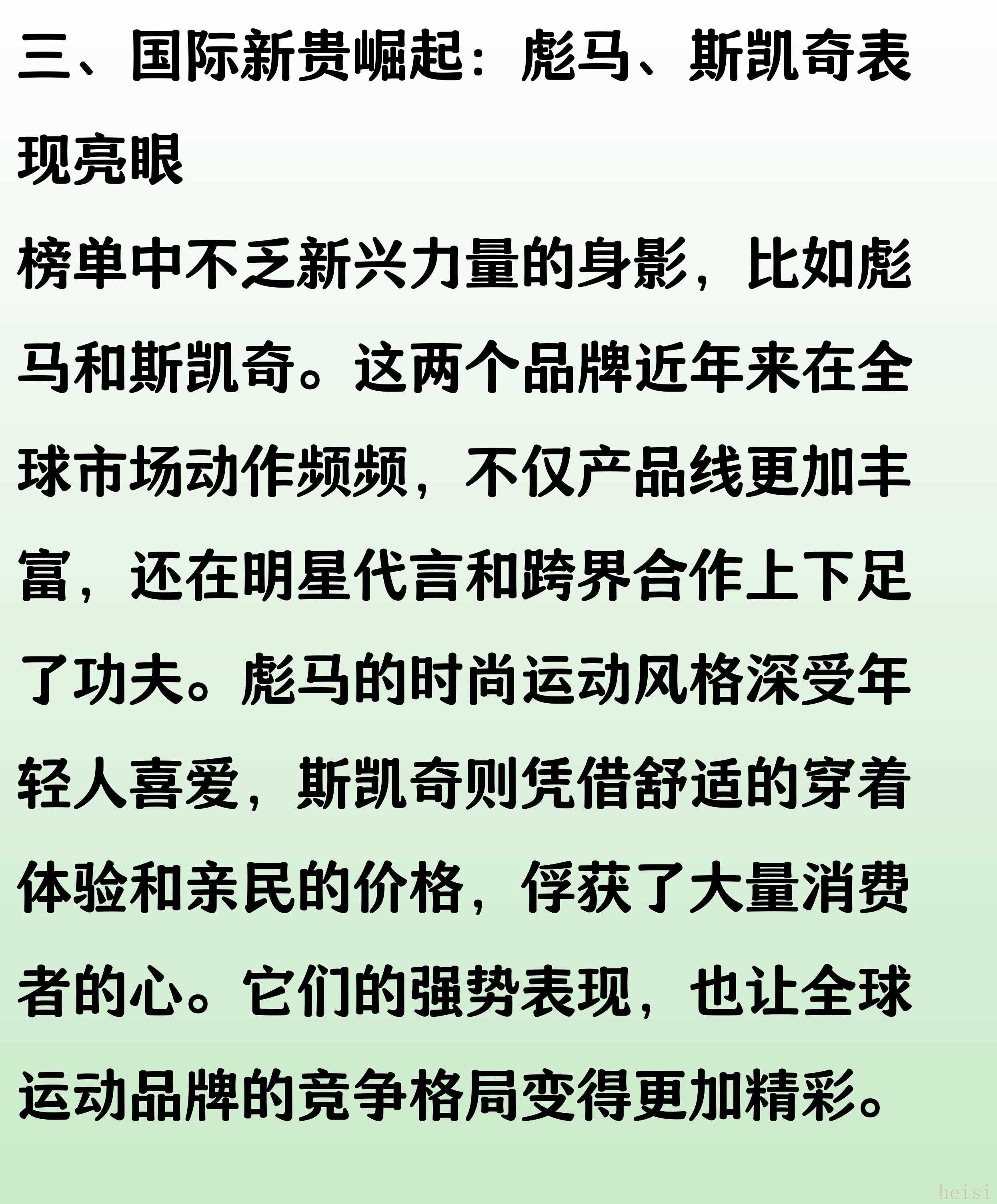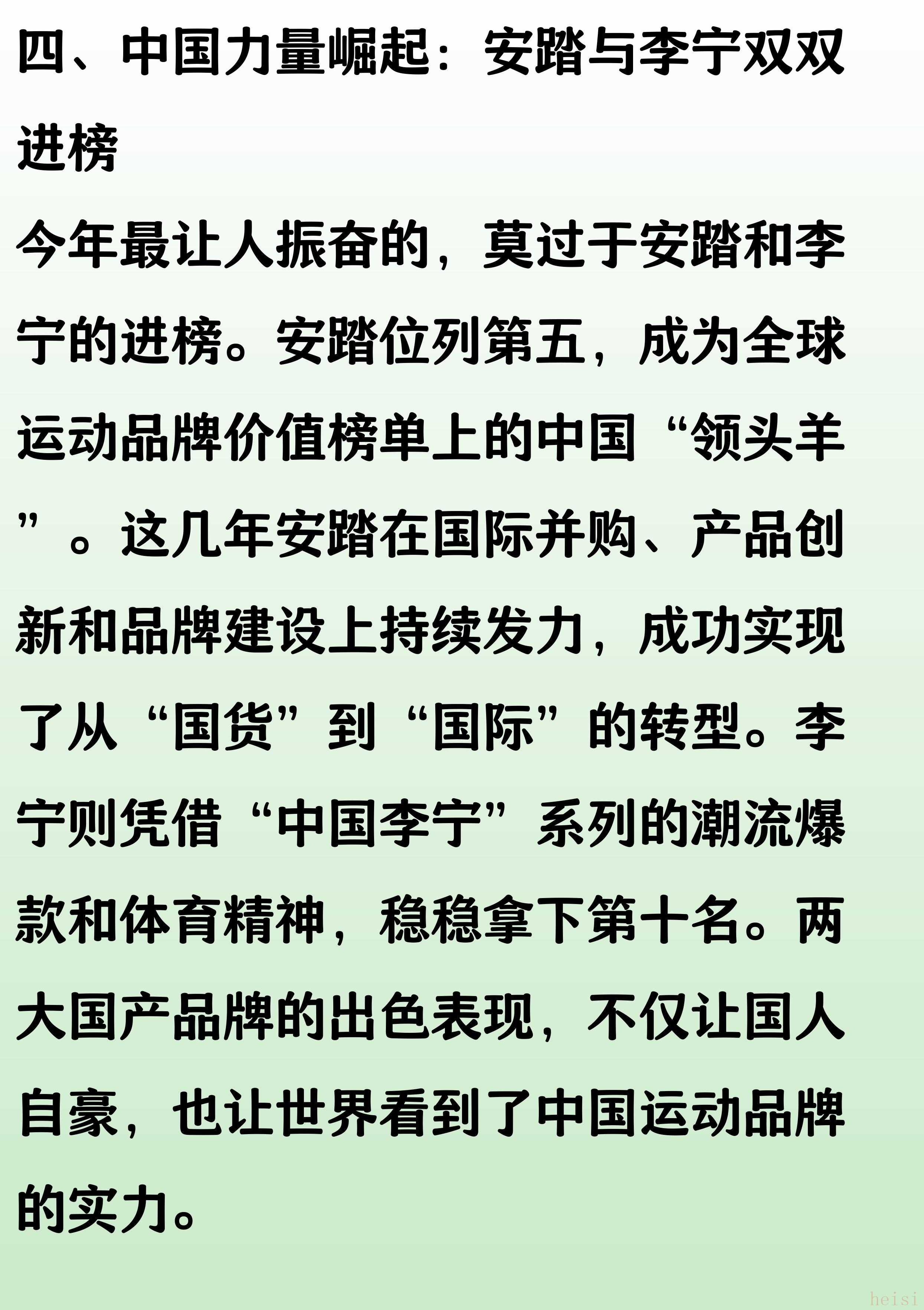 這份榜單反映了全球運動品牌在市場中的競爭力和影響力。安踏和李寧作為中國的運動品牌,能夠進入前十名,