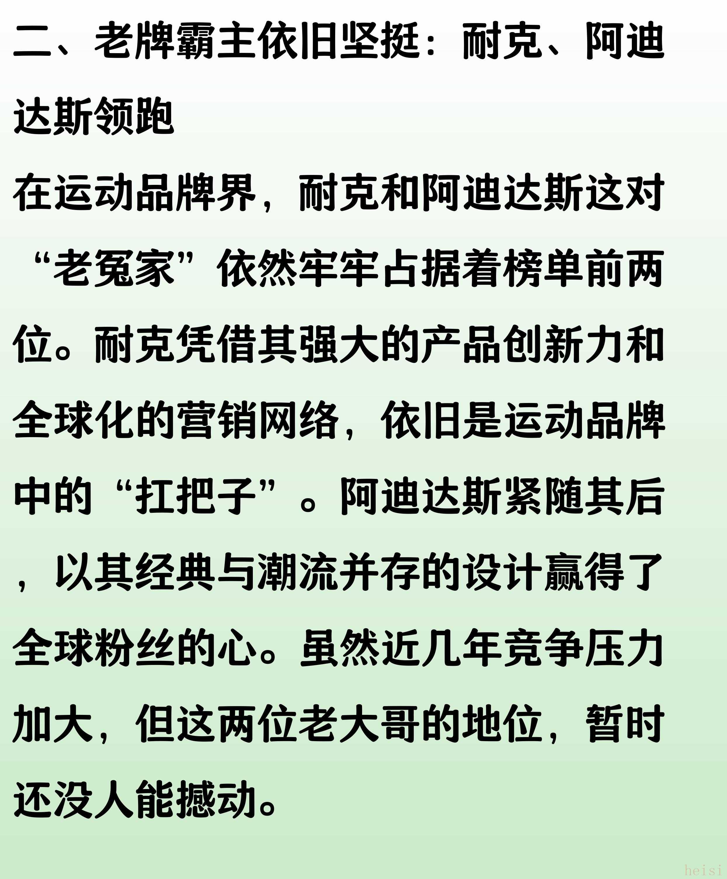 4. "耐克(Nike)":再次上榜,顯示了其在全球運動品牌中的強大地位。