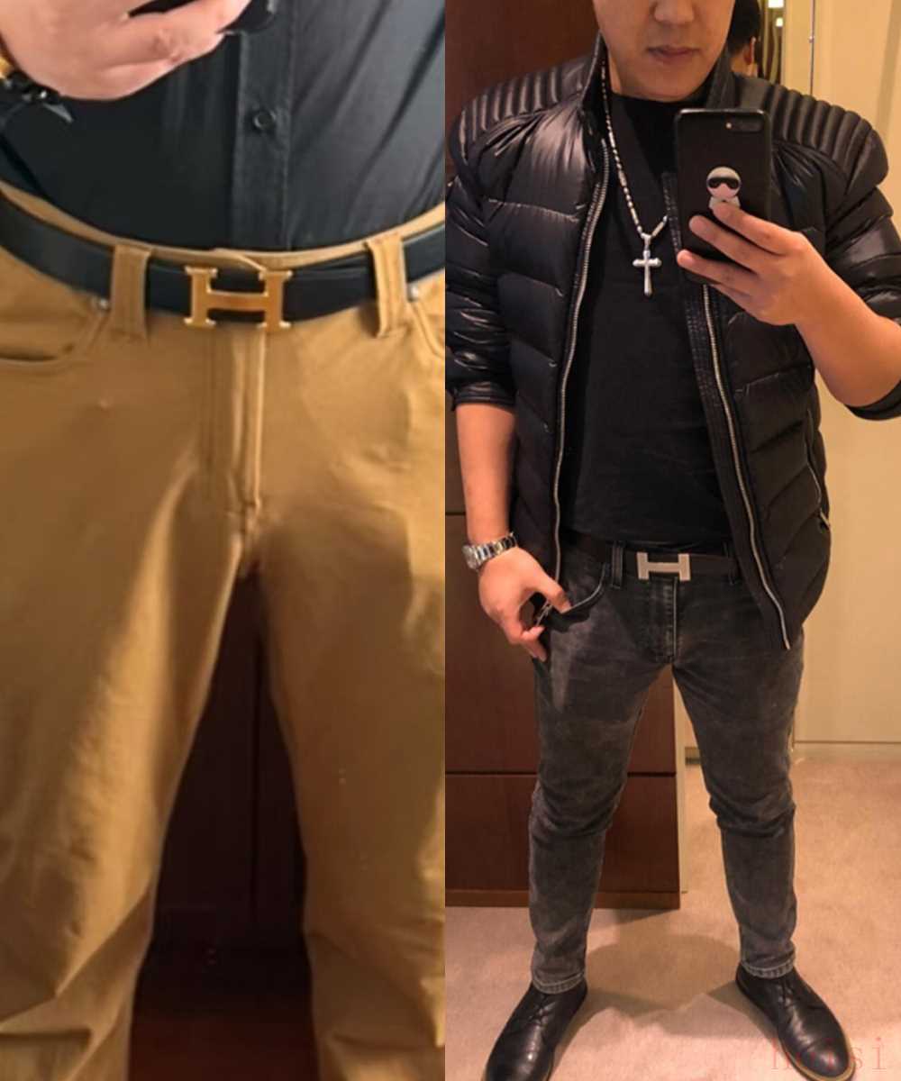 其不論H頭皮帶是否為愛馬仕,反正已經(jīng)在中年男人穿搭中成了必備單品,出門撞皮帶的概率非常高。尤其是一些身材發(fā)福的男人,系上這大扣頭的皮帶,勒出大肚子和贅肉,再配上一串鑰匙,真的是顯胖、油膩又土氣!