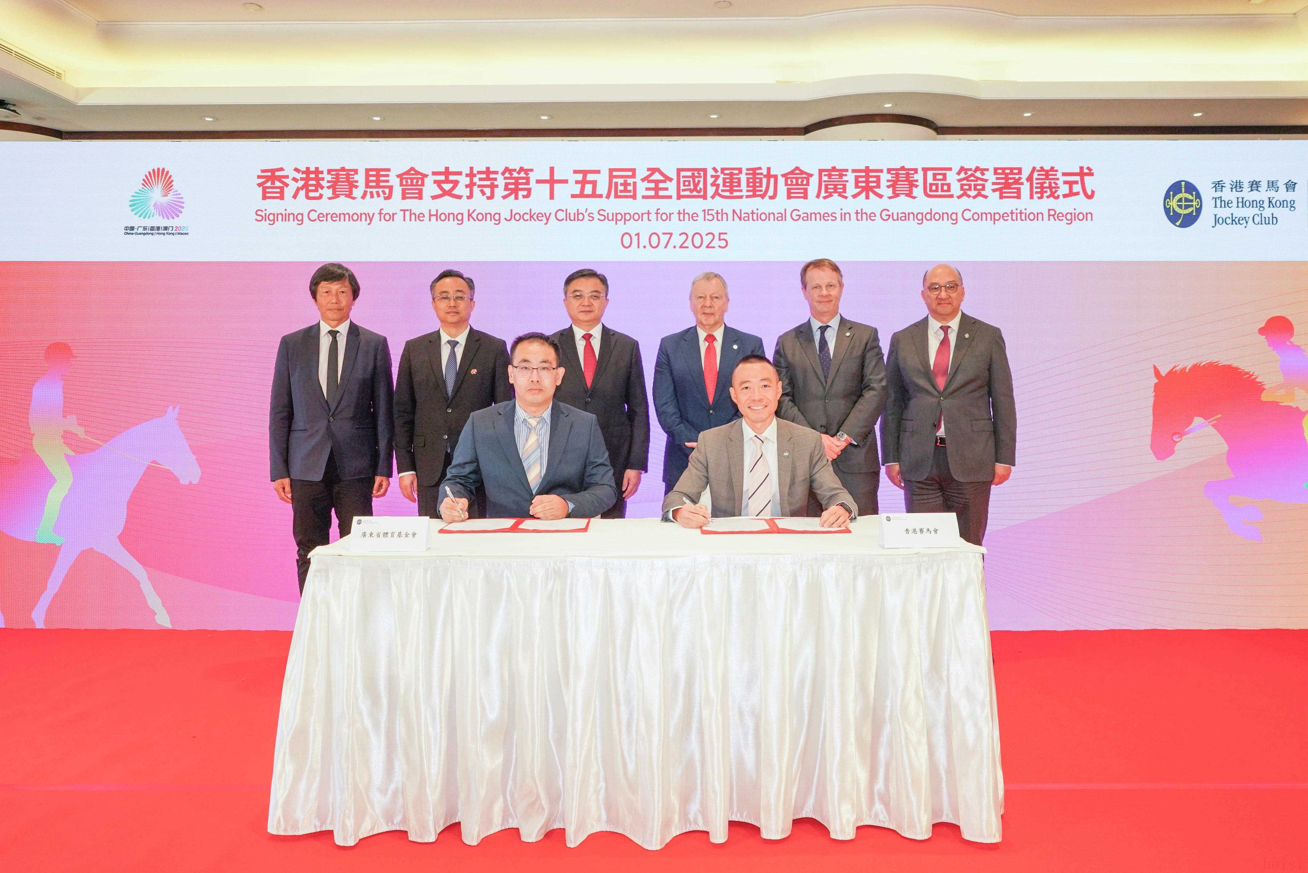 今年,粵港澳三地首次共同承辦全運會及殘?zhí)貖W會。7月1日,香港賽馬會支持十五運會和殘?zhí)貖W會廣東賽區(qū)簽署儀式在馬會沙田會所舉行。香港賽馬會將憑著舉辦世界級馬匹運動賽事的豐富經(jīng)驗,支援在深圳市光明區(qū)舉辦的十五運會馬術(shù)賽事,重點圍繞六大范疇,包括場地設(shè)計、馬匹福利、反興奮劑、馬房管理、賽事服務(wù)保障、宣傳與社區(qū)活動。