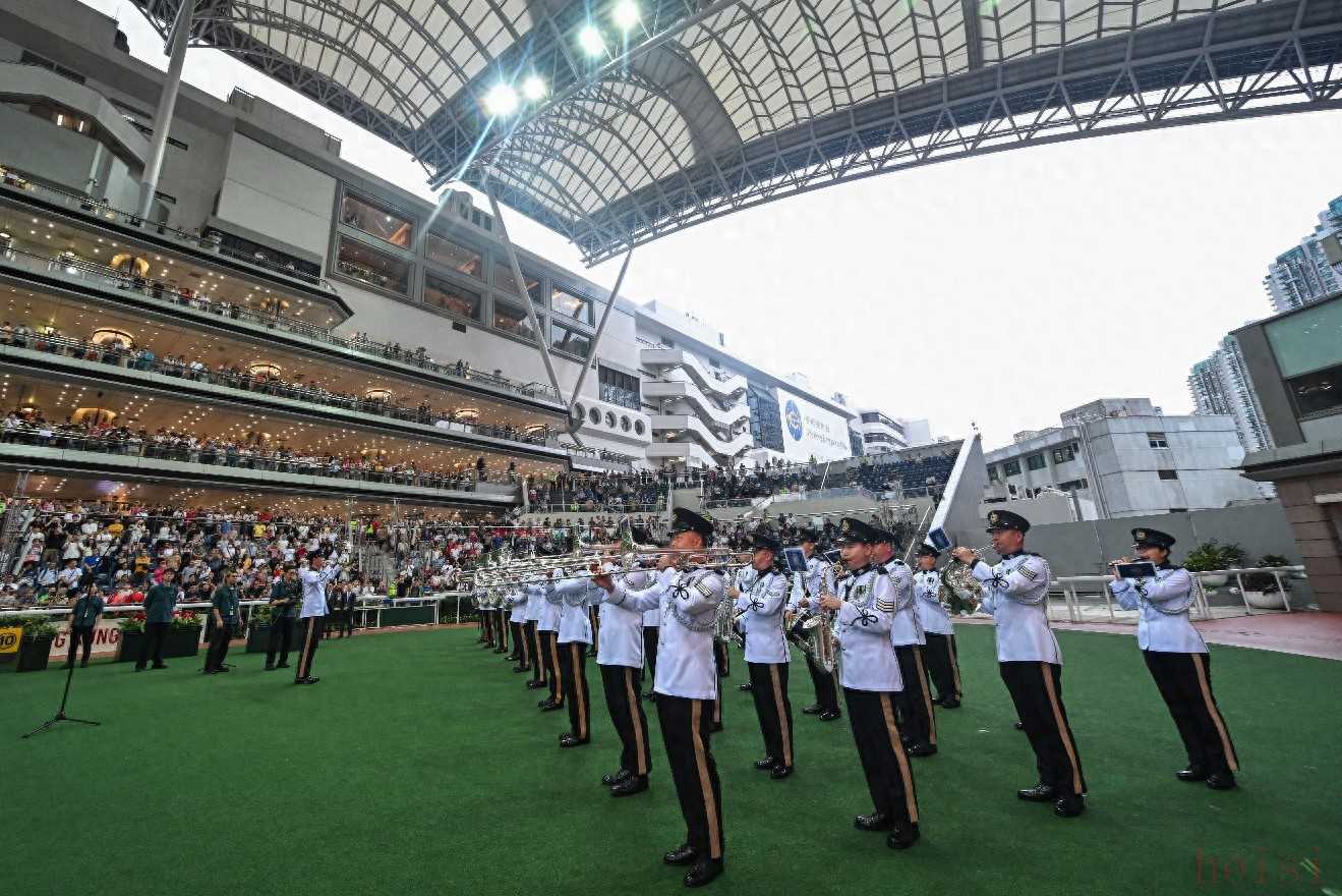 香港警察樂隊在“香港回歸杯”頒獎儀式上演奏中華人民共和國國歌。本文圖片均由香港賽馬會提供