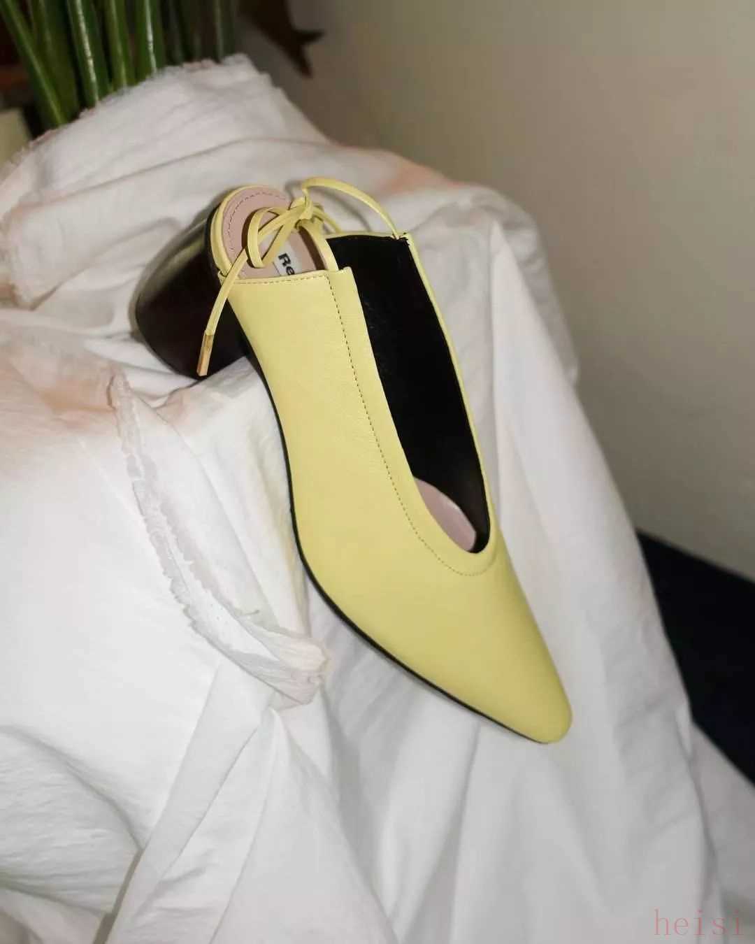 櫻黃色尖頭高跟鞋