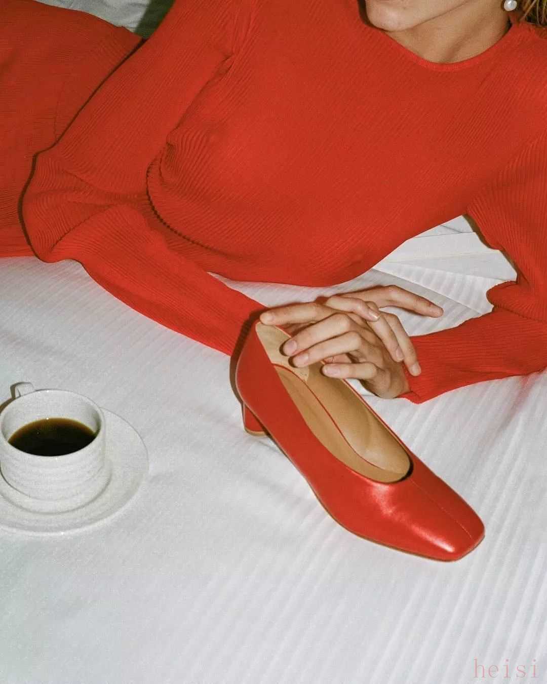 那么可以試一下這一雙復古磚紅高跟,面料軟硬適中,不會被腳背撐大,可以顯腳小。而且微微亮面的質(zhì)感,也更具備復古高級感。