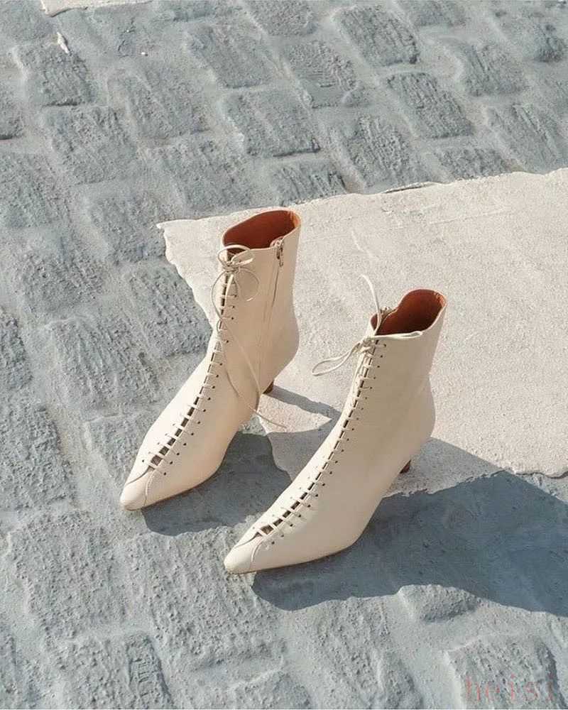 白色綁帶尖頭短靴