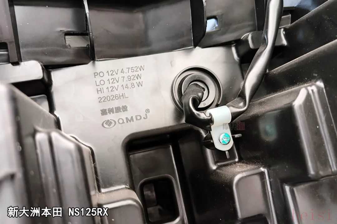 這個部件的成本并不一定比其他品牌踏板車普遍采用的鋼管構(gòu)件低,只能說Honda之流的能用塑料件就不多用一塊金屬的觀念根深蒂固。NS125RX的燈具總成來自嘉利,背后標(biāo)注的近光燈組功率僅7.92W,遠光燈組也僅有14.8W,所以在燈光測試部分表現(xiàn)不佳也實屬正常。