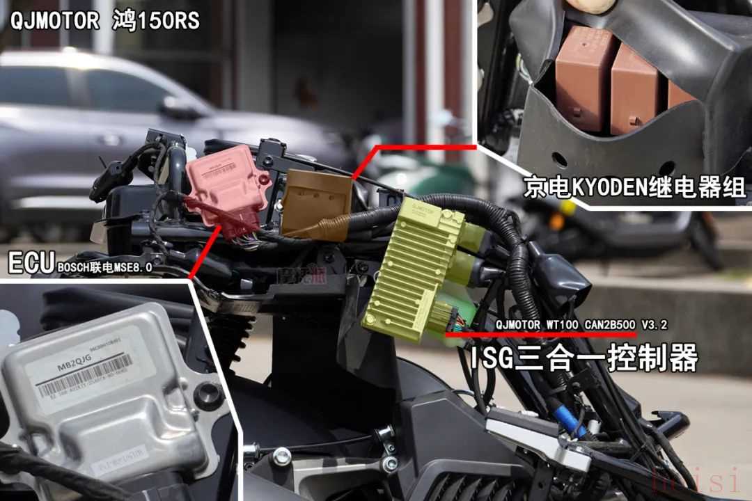 ISG控制器仍然是QJ自己的產(chǎn)品,型號與鴻125相同為WT100-CAN2B500,版本號更新迭代到V3.2。繼電器組具備完整的防水膠套,品牌則與本田NS125RX一樣來自日本京電KYODEN。