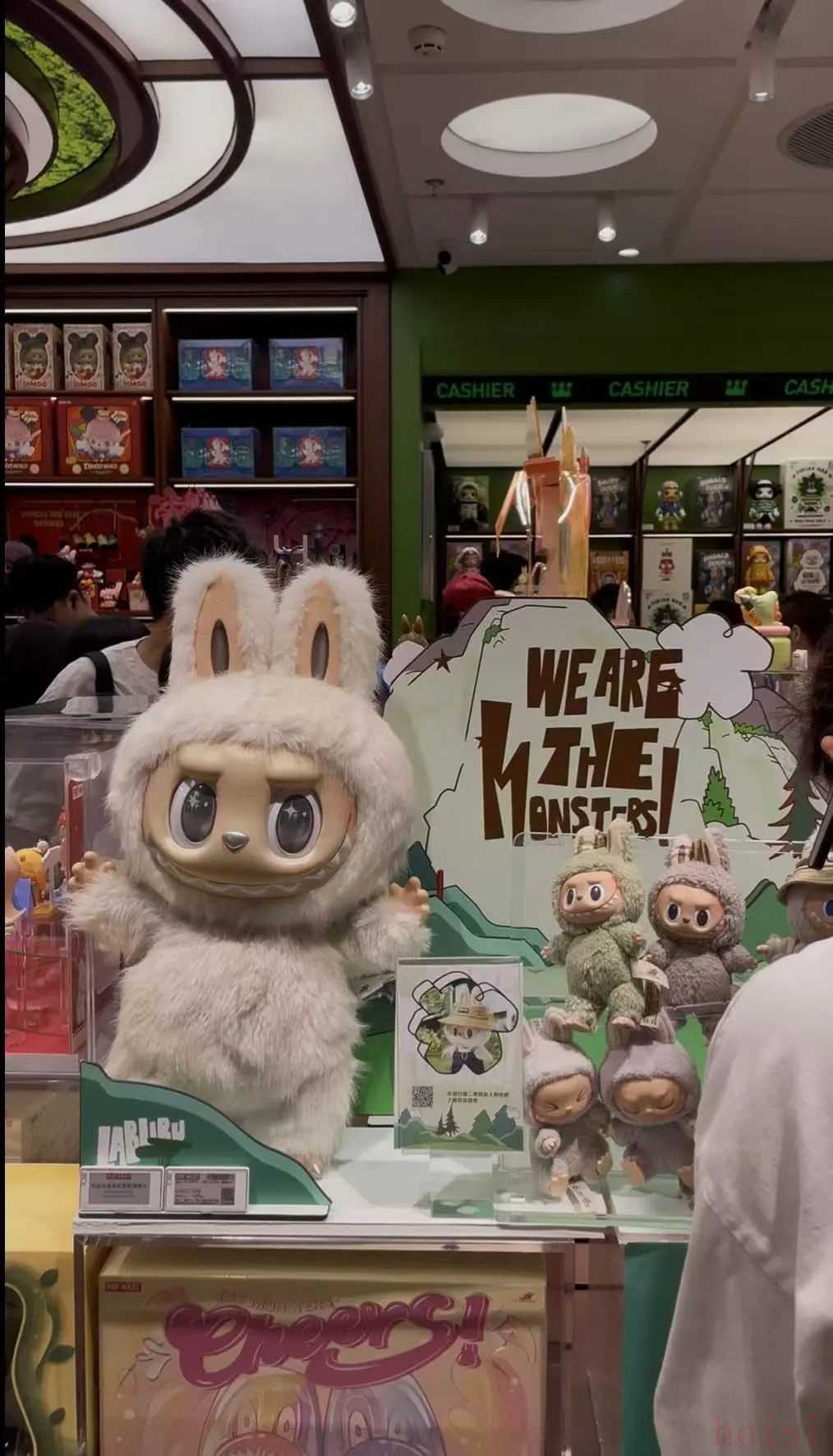 泡泡瑪特門店里的LABUBU搪膠毛絨公仔。記者攝。