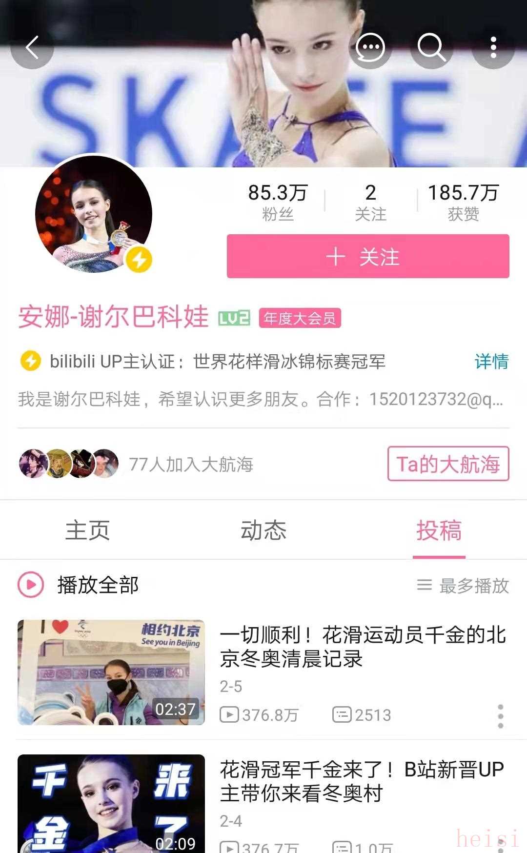 昵稱“千金”的謝爾巴科娃冬奧吸粉無數(shù)。(圖源B站)