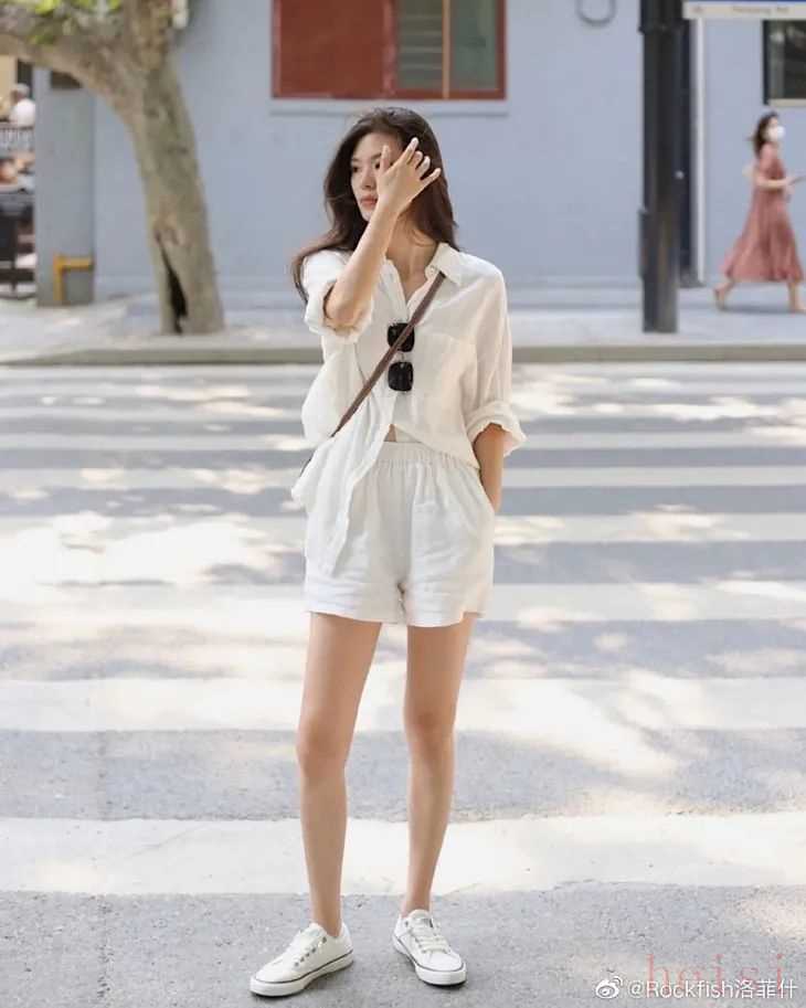 日常配一條短褲,配一件襯衫都是夏天最in的模樣,簡(jiǎn)簡(jiǎn)單單的白鞋也可以穿的很有范兒。