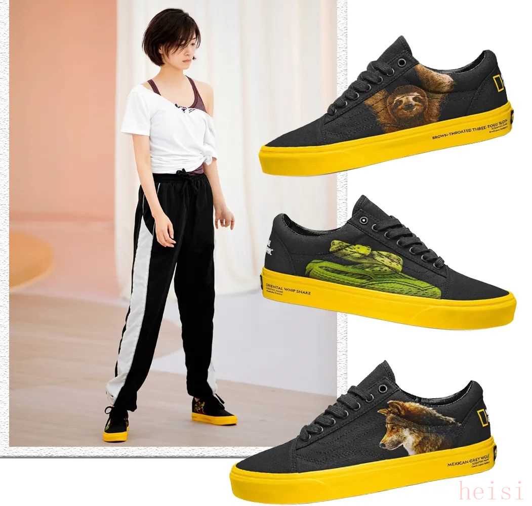 比如喜愛(ài)布鞋如萬(wàn)茜,她前一段時(shí)間就穿了VANS x 國(guó)家地理的鞋子,純黑的鞋面印上了“兇猛”的動(dòng)物圖案,的確挺適合她這種氣場(chǎng)爆棚的女孩。