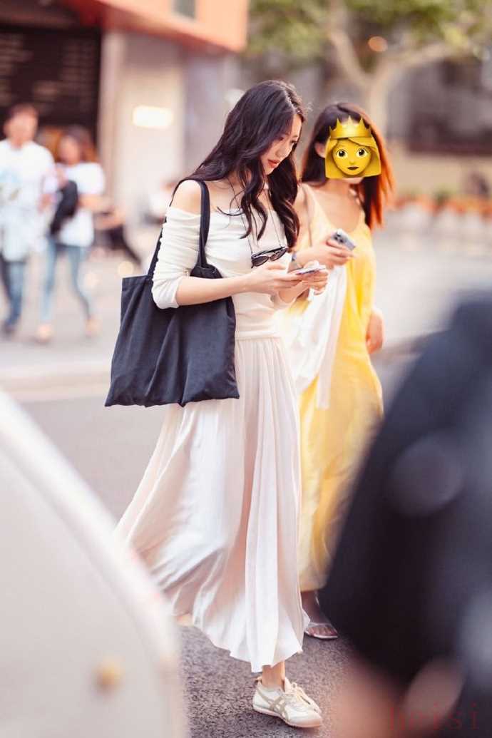 光腳穿鬼塚虎,就是上海人松弛感的一種表現(xiàn)方式,配上純色系裙裝,看似不經(jīng)意的打扮,在街拍中卻顯得意外松弛,自然不做作,高級感滿滿~