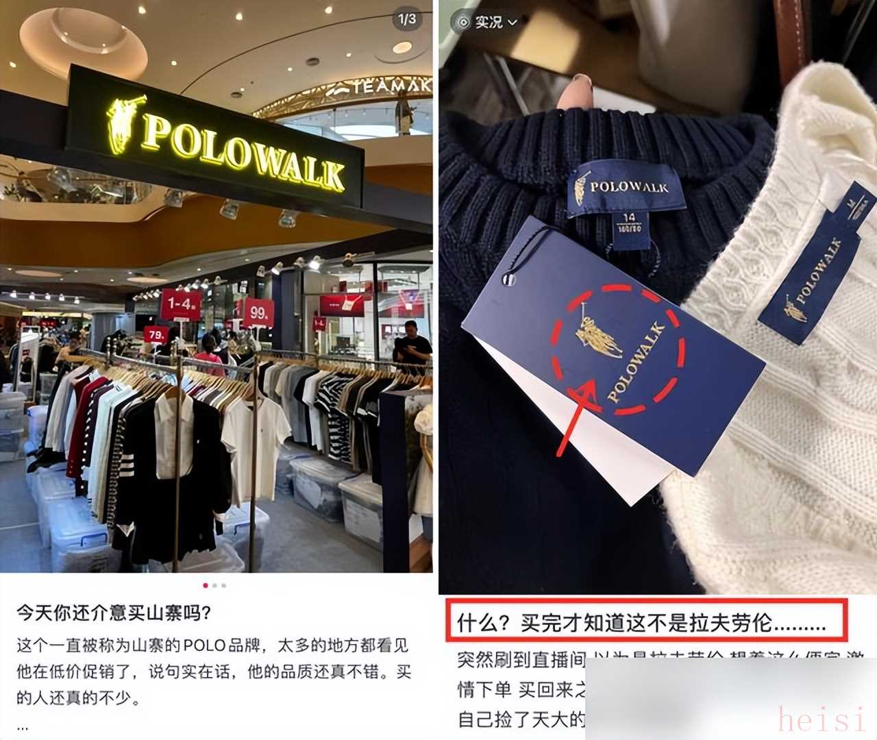 那個經(jīng)典騎馬小人的logo,被山寨商玩成一場“大家來找茬”:馬變驢、人變貓、字母順序隨機洗牌。某些商場專柜擺著“POLOVILLAE”的Polo衫,價格只有正品零頭,不明就里的消費者沖著“大牌平替”掏腰包,殊不知買了個消消樂聯(lián)名款。