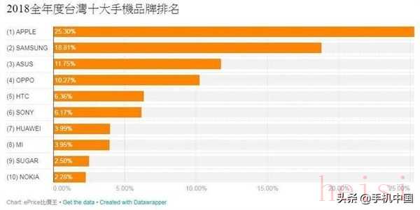 2018全年度臺灣地區(qū)十大手機品牌排名