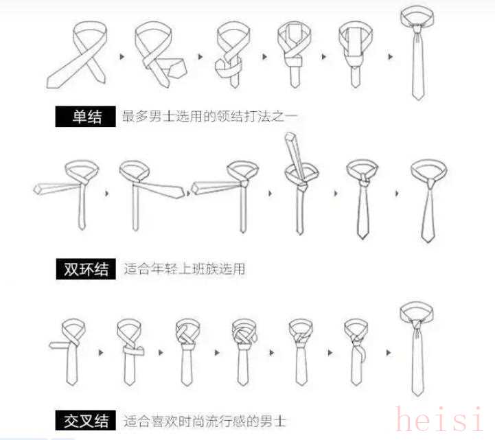 領(lǐng)帶打法有很多種,但很多人是基本的都打不好,更別說花樣了。所以如果不會(huì)打的話,可以參考下面這三種比較常用且簡單的。
