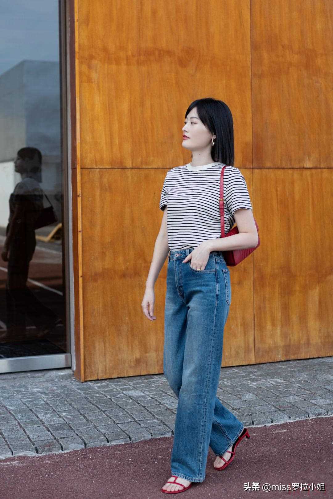 條紋衫與牛仔褲的組合,堪稱經(jīng)典的法式極簡風。