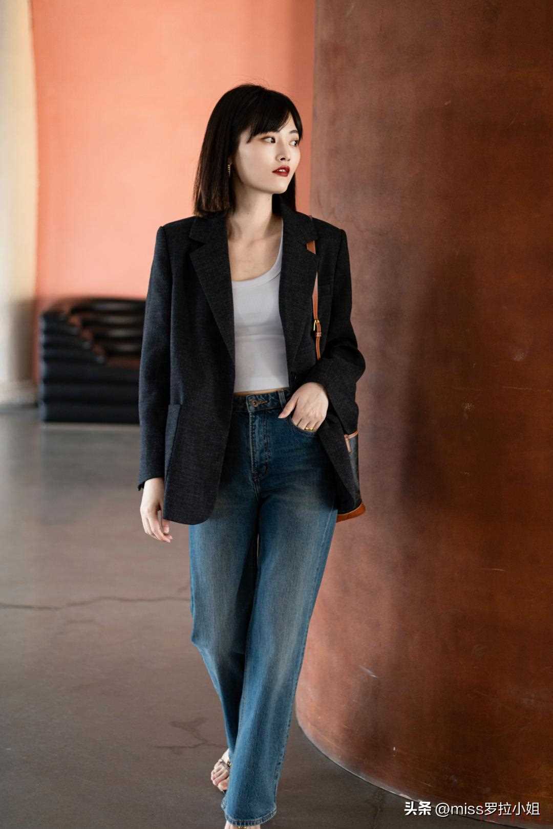 如果想要更加時髦的職場穿搭,也可以用西裝外套來搭配這條牛仔褲。