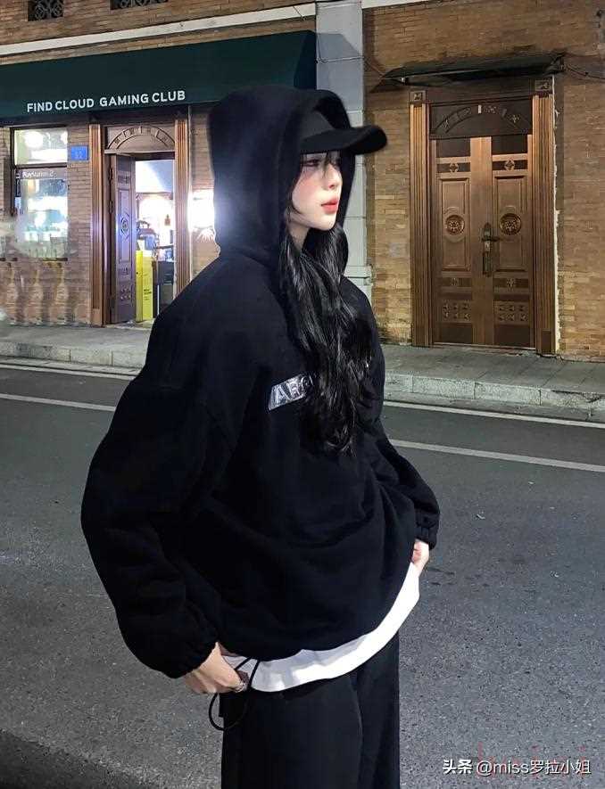衛(wèi)衣的寬松與白T的簡潔相結合,營造出一種慵懶隨性又充滿高級感的時尚氛圍。