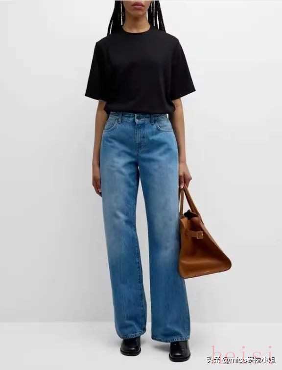 The Row牛仔褲 vs 團購牛仔褲不同于闊腿褲的偏窄版型,以及微微蓋住腳面的十分褲長,外加中高腰的設計真的能很大程度的拉長我們的腰線。
