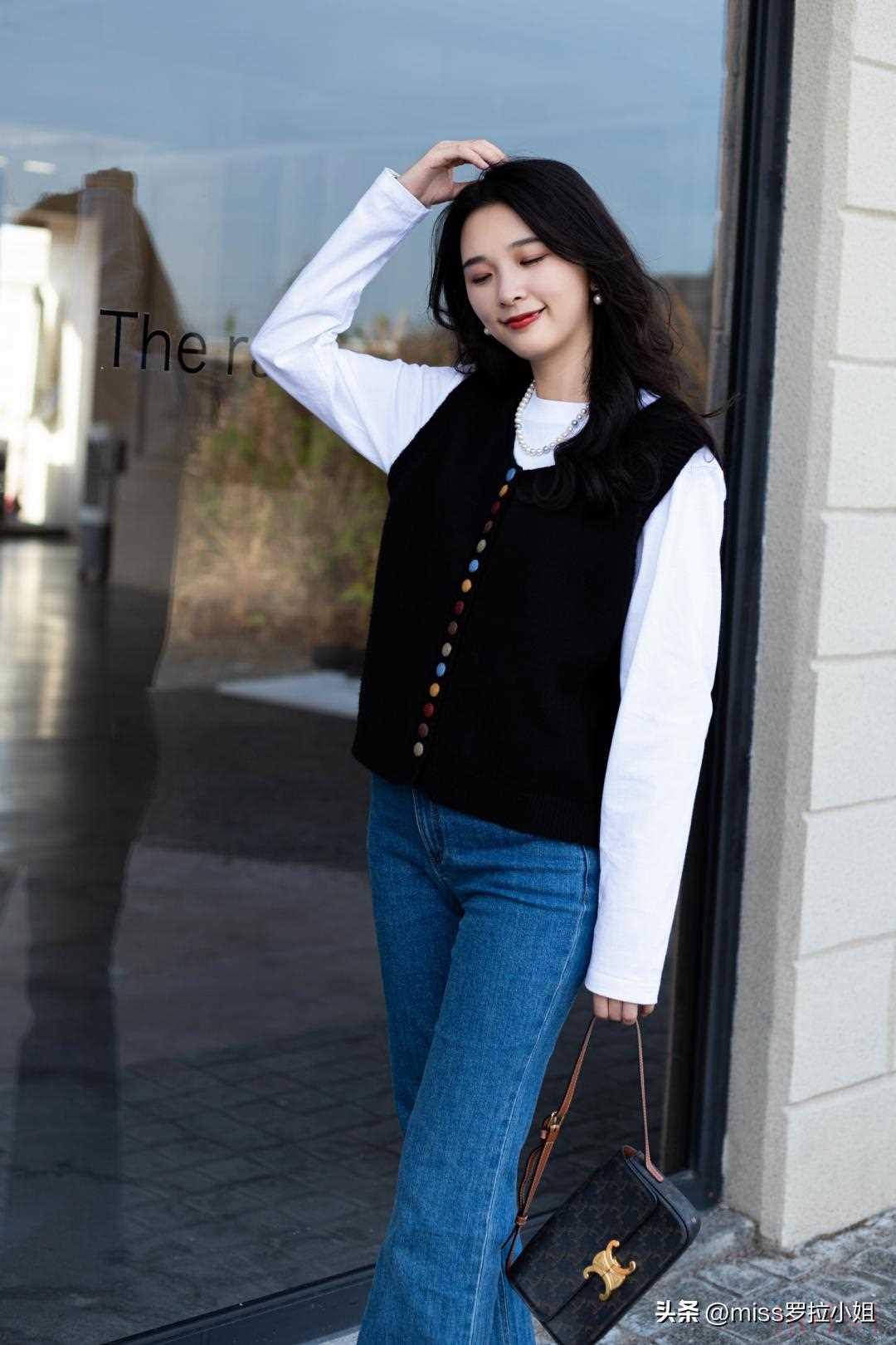 大婷驚訝地說:之前穿毛衣馬甲很多時候都是搭襯衫,沒想到長袖T搭配起來不比襯衫差。
