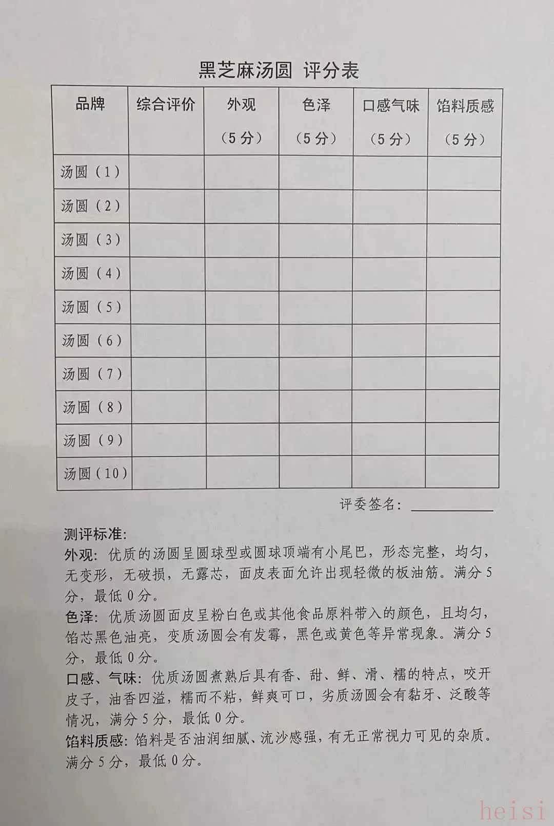 煮熟后,評委們從湯圓的外觀、色澤、口感、氣味和餡料質(zhì)感等方面對編號1至10號湯圓進行打分。