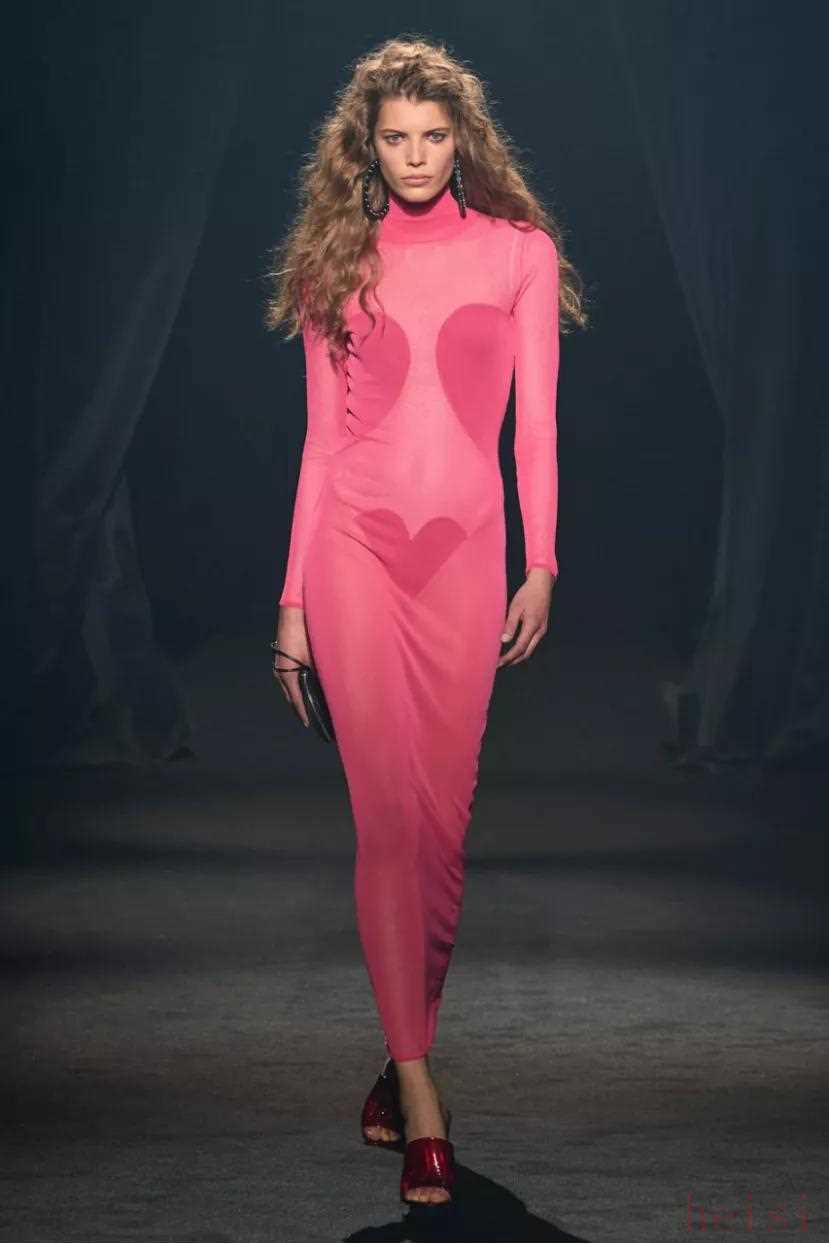 Pieter Mulier的粉色針織連衣裙中,運(yùn)用了Alber設(shè)計(jì)里常見的桃心形狀。