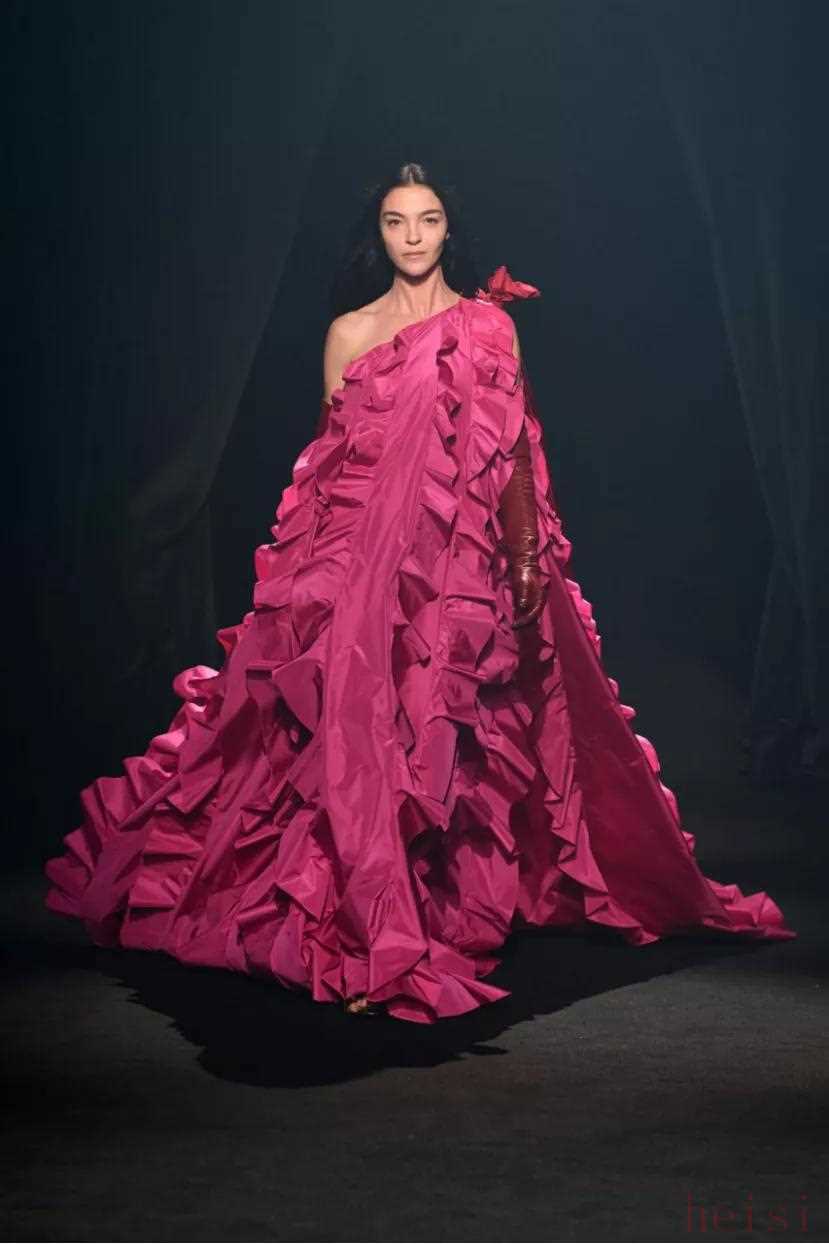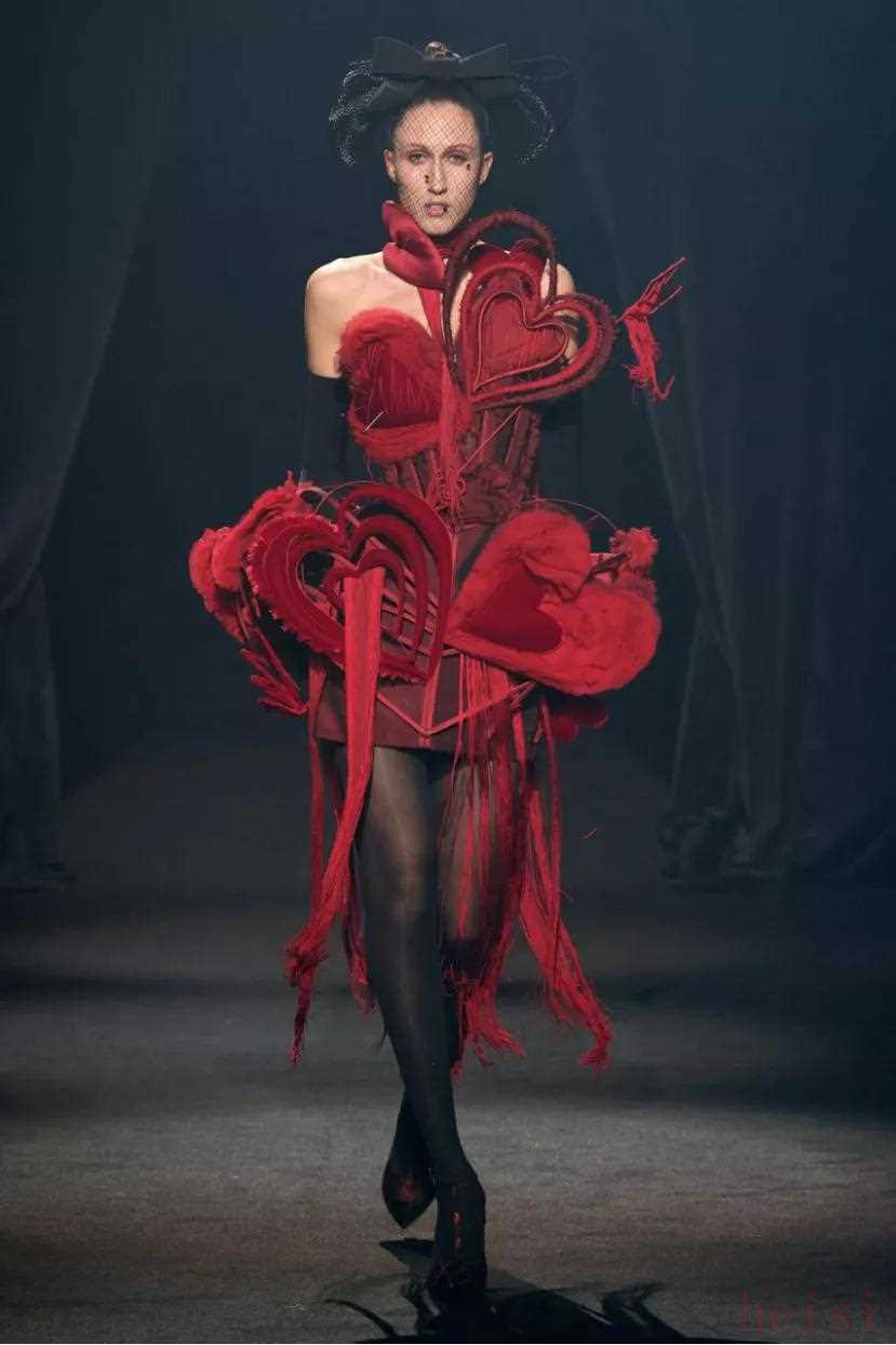 Jean-Paul Gaultier引用Alber的“coeur a l'ouvrage”,帶來一件立體且層次感分明的紅心高級(jí)禮服。