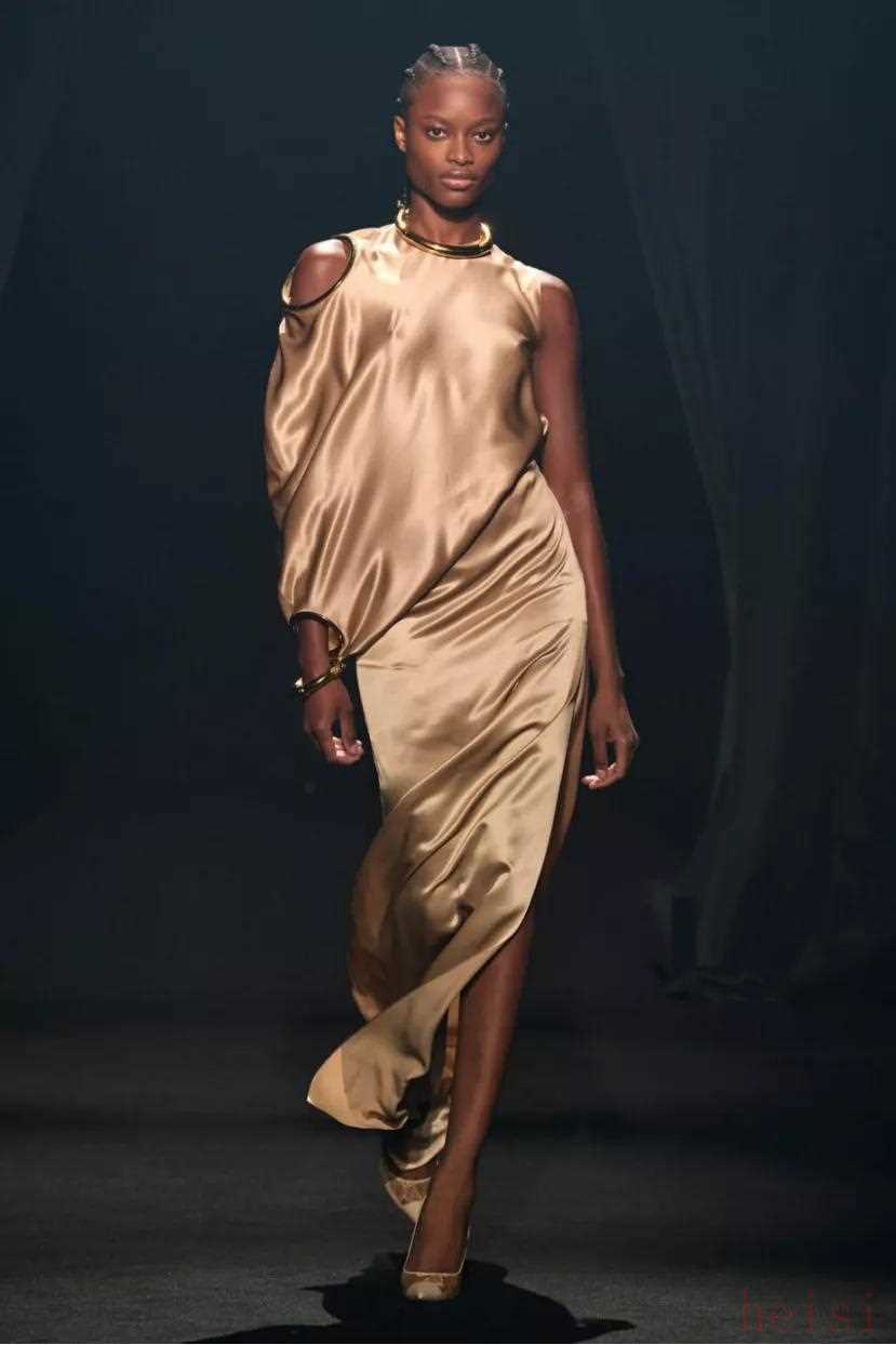 Riccardo Tisci用了Alber非常喜愛的羅緞面料,展現(xiàn)時(shí)裝流暢、運(yùn)動(dòng)的曲線。