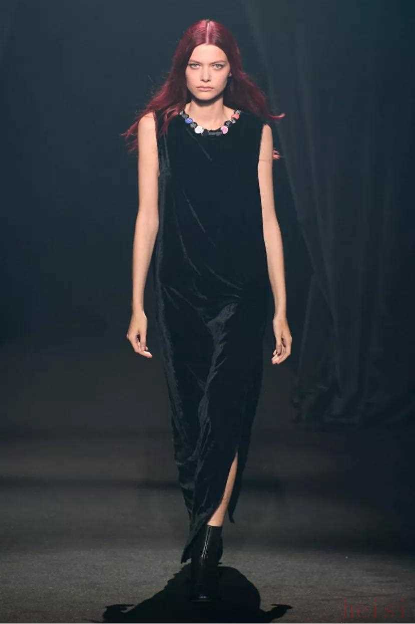 昏暗的光影下,由Alber Elbaz自己設(shè)計(jì)的AZ Factory黑色連衣裙第一個(gè)登場,不規(guī)則的袖子造型很有Alber不拘一格的特色,讓穿衣者充分享受造型的樂趣。