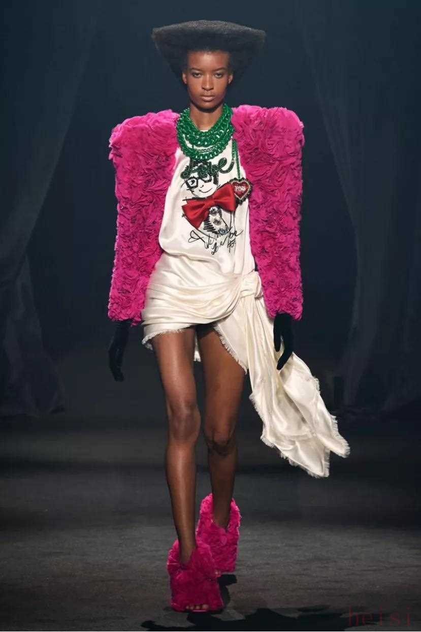 BALENCIAGA背后巨大的蝴蝶結(jié)是對(duì)Alber的致敬,Alber最喜歡在黑色西服上搭配一只粉色蝴蝶結(jié)領(lǐng)結(jié)。