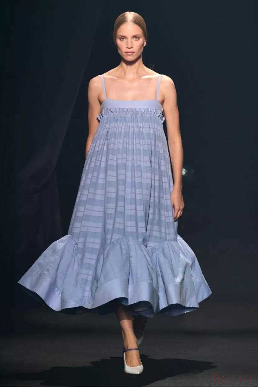 他的設(shè)計(jì)簡潔又輕盈,無論是用色還是線條,都極為流暢優(yōu)美,讓人看一眼就會(huì)心動(dòng),接著就會(huì)幻想自己穿上是什么樣。