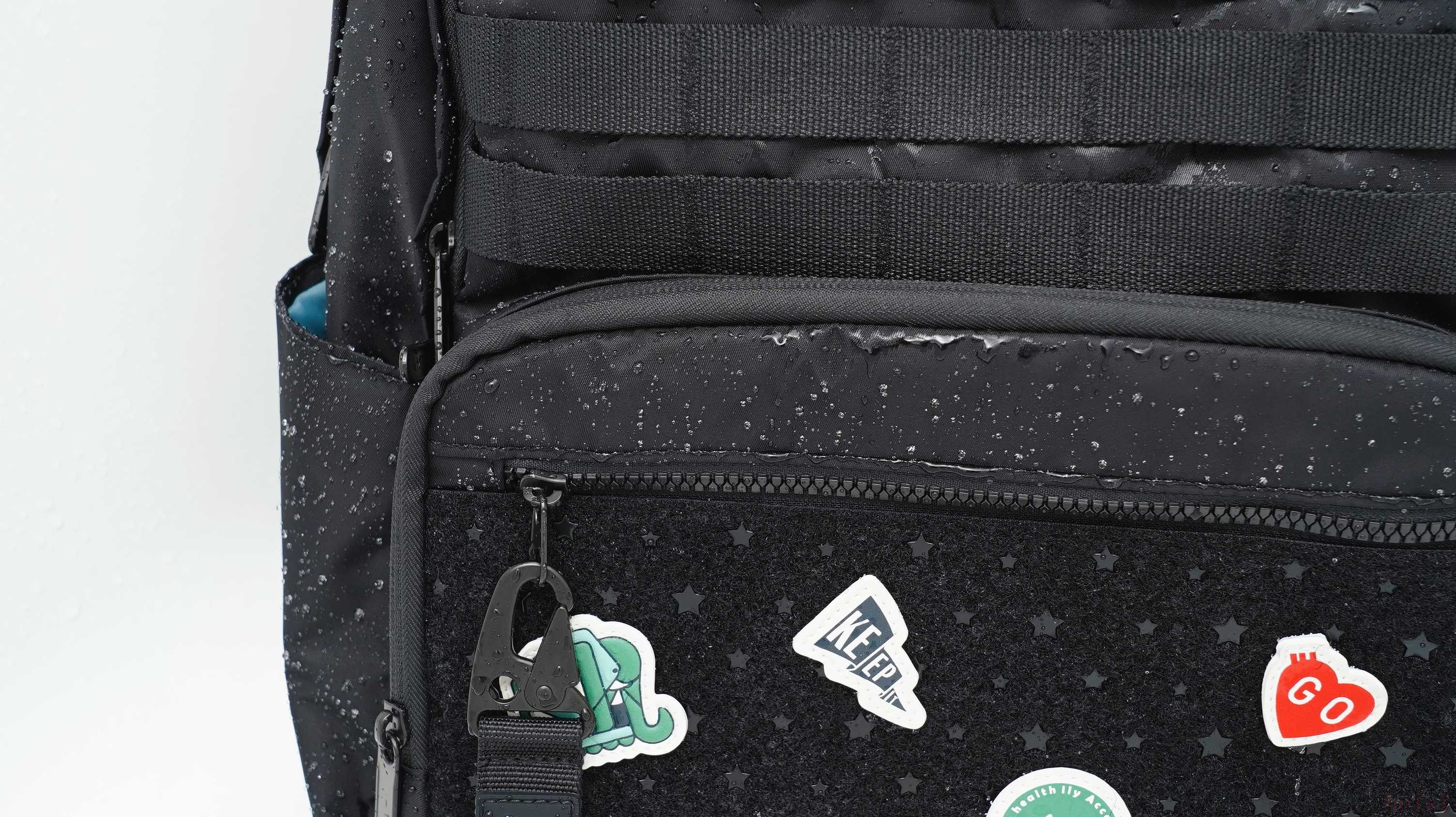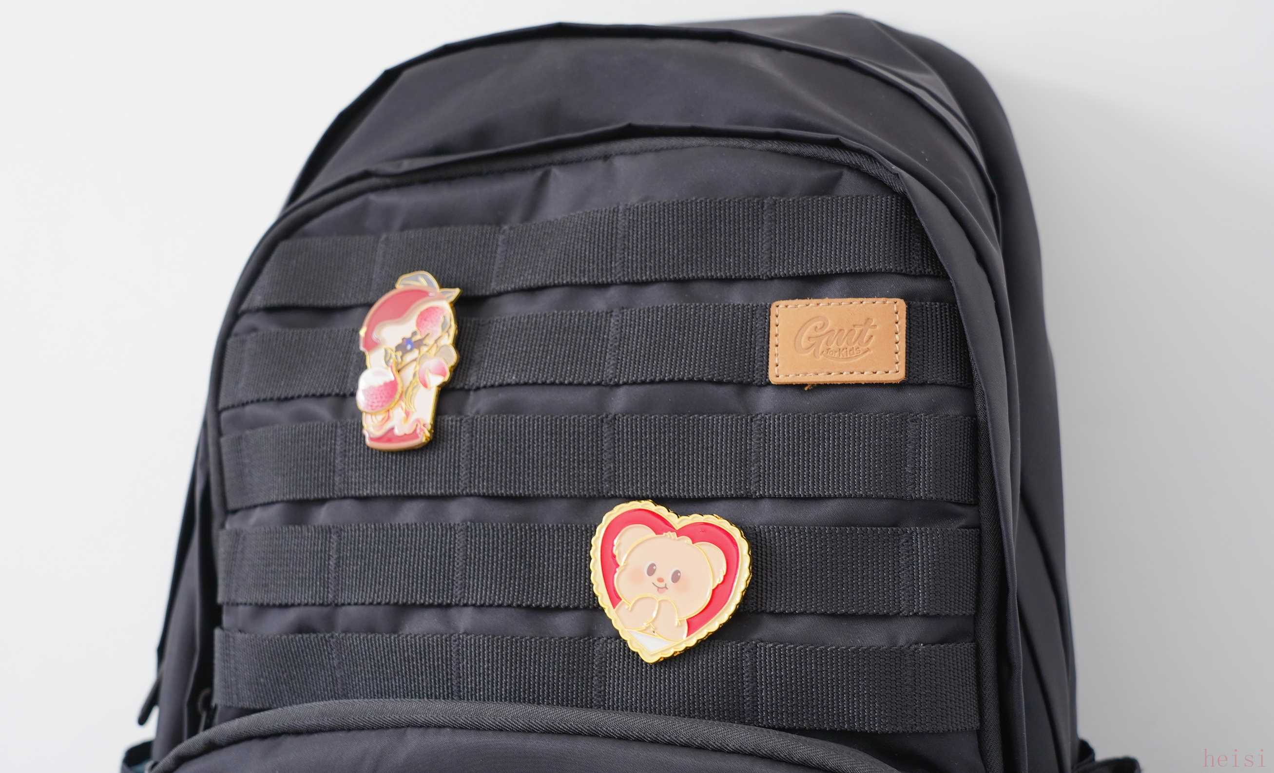 除了魔術貼區(qū),書包上方還有5層的織帶區(qū),偶像、運動、動漫等各種主題的鑰匙扣、胸針、掛件等等各種“谷子”們,可以機動靈活的往上安。