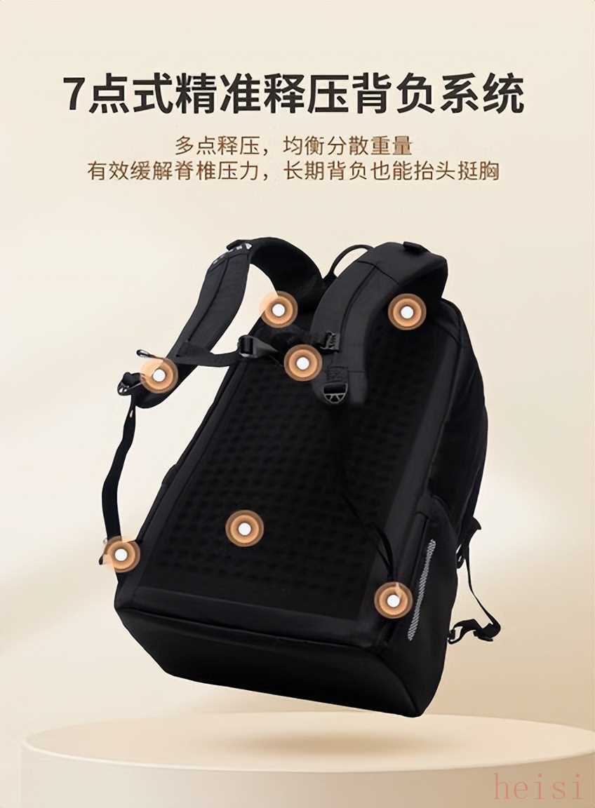 S型加厚肩帶系統(tǒng),7點式承托設計,多點施壓,分散重量,讓背負的受力更合理,體感更舒適。