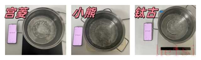 宮菱電磁爐在散熱表現(xiàn)方面十分出色。停機(jī)五分鐘后,散熱速度達(dá)到47.6W/m2,得益于其獨特的渦流式設(shè)計和創(chuàng)新的八通道風(fēng)扇,高效導(dǎo)流能夠迅速排出腔體內(nèi)的熱量,使設(shè)備在使用過程中始終保持溫度穩(wěn)定。即使在高負(fù)荷運(yùn)行時,散熱效果依然穩(wěn)定。宮菱還采用了幾乎無聲的隱式渦輪風(fēng)機(jī),使得使用體驗更加舒適。簡潔的內(nèi)部設(shè)計能夠有效避免灰塵和雜物的堆積,同時封閉設(shè)計也防止了油污對散熱性能的影響,有效保護(hù)了內(nèi)部組件。小熊電磁爐在停機(jī)五分鐘后的散熱速度為69.7W/m2,盡管散熱速度稍快,但面板溫度在斷電后依然較高,使用時明顯感覺到溫?zé)?,建議品牌進(jìn)一步優(yōu)化內(nèi)部設(shè)計和風(fēng)機(jī)性能,以提升散熱效果。鈦古電磁爐在散熱方面表現(xiàn)中等,五分鐘后散熱速度為62.1W/m2。雖然散熱效果不錯,但在使用時仍會有熱氣撲面而來,用戶需避免長時間接觸機(jī)身,以防燙傷。維度二:加熱效率實測宮菱、小熊、鈦古電磁爐可以嗎?電磁爐的加熱效率直接影響烹飪時間,一款加熱效率高的電磁爐能夠大大縮短烹飪時間,幫助用戶快速完成各種烹飪?nèi)蝿?wù)。為了測試三款電磁爐的加熱效率,我們分別準(zhǔn)備了同規(guī)格的鐵鍋,加入兩升水,然后用各品牌電磁爐進(jìn)行加熱,并記錄水沸騰所需的時間。