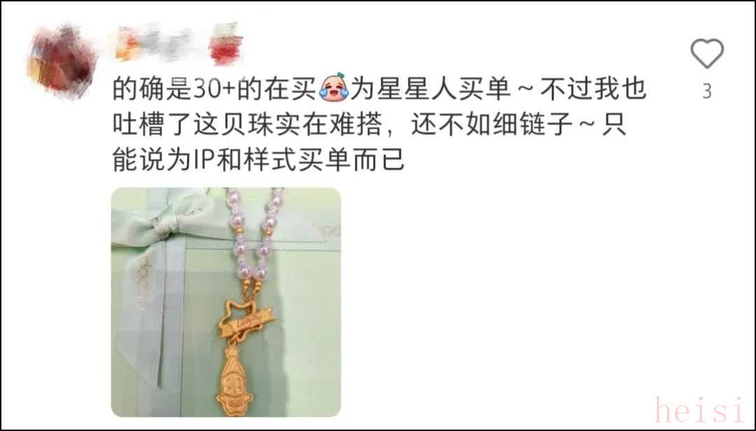 然而我們也必須看到,珠寶體積小且缺乏鮮艷色彩,嚴重限制了IP情緒價值的傳遞效率。以我購買的Labubu吊墜為例,正常社交距離很難分辨是什么形象,要湊得非常近才能勉強辨別。 IP夸張的造型、靈動的表情和鮮艷的色彩,在微縮化的925銀材質(zhì)上變得模糊不清,甚至被部分消費者評價為“丑”。失去盲盒立體形態(tài)的豐富細節(jié)和拆盒瞬間的驚喜感,小體積珠寶的情緒投射價值大打折扣。