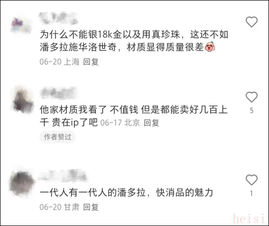 popop的低成本材質(zhì)、高設(shè)計溢價模式,和施華洛世奇、潘多拉高度相似,然而泡泡瑪特缺少這兩個品牌在珠寶領(lǐng)域的品牌勢能,且用戶對類似模式已經(jīng)免疫,失去濾鏡。 甚至有用戶直言:真的顯得很不值錢,不高檔,有點看不上。