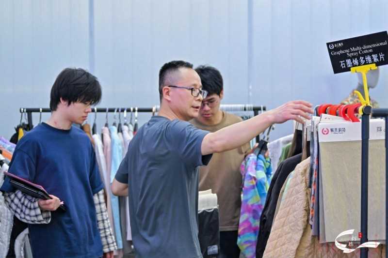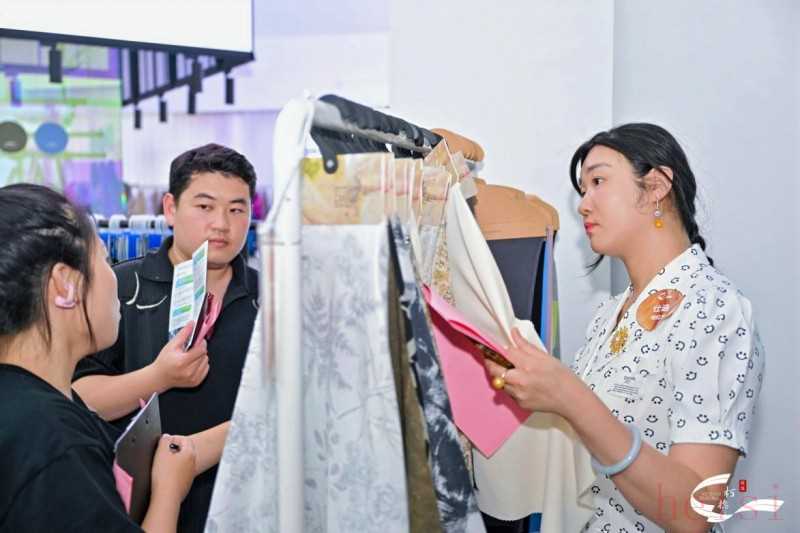 對(duì)接會(huì)現(xiàn)場(chǎng),面料企業(yè)在獨(dú)立展架上展示了豐富的樣布及樣衣產(chǎn)品,讓品牌采購商能夠直觀地了解面料材質(zhì)、風(fēng)格、手感等特性,并通過詳細(xì)推介,使品牌更加全面地獲悉了面料的設(shè)計(jì)理念、技術(shù)工藝、應(yīng)用場(chǎng)景。