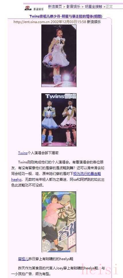Twins在當年一場演唱會上,就曾“動用過”暴走鞋,兩個女孩在舞臺上滑來滑去如同會輕功一般,讓無數(shù)年輕人為之著迷。