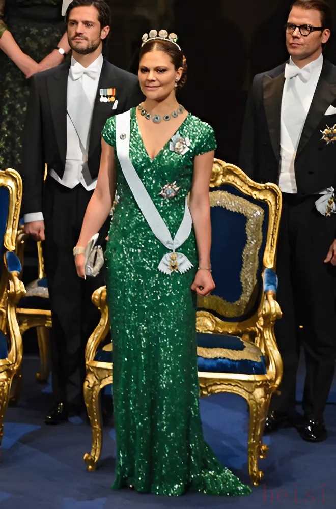這件華麗禮服的首次亮相是在 2012 年的諾貝爾獎(jiǎng)?lì)C獎(jiǎng)典禮上。選擇艾莉?薩博設(shè)計(jì)的這件連衣裙十分明智,突顯了王儲(chǔ)維多利亞在這一重大活動(dòng)中的身份地位與優(yōu)雅氣質(zhì)。