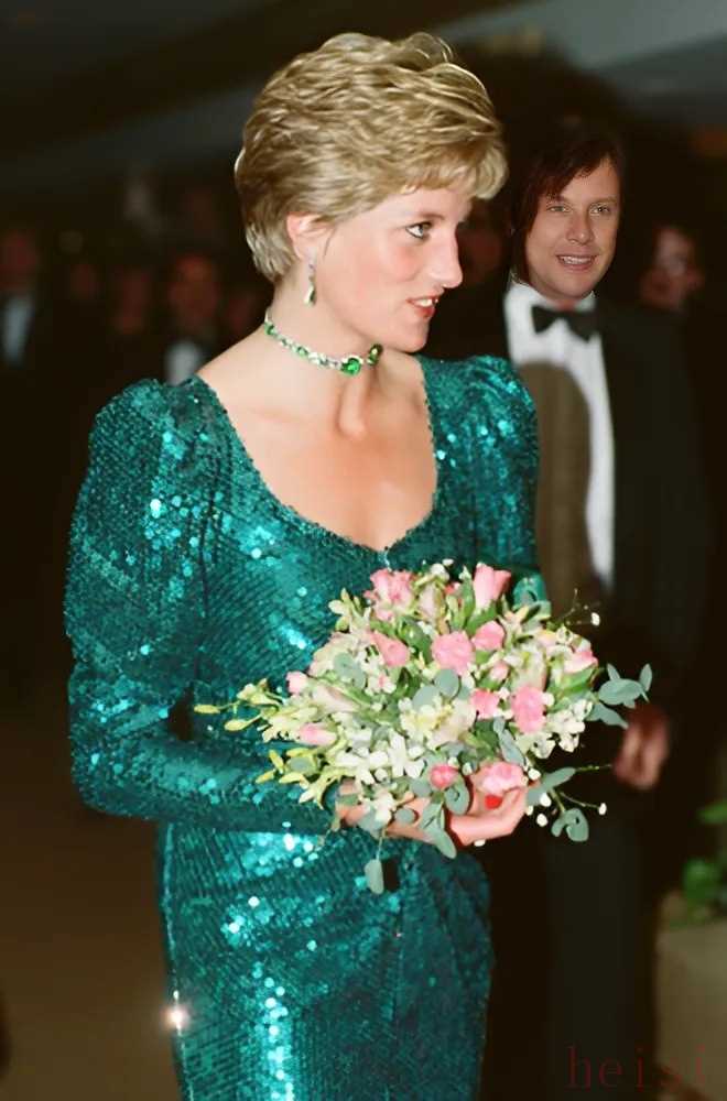 戴安娜王妃堪稱(chēng)巧妙重復(fù)穿搭的典范,她多次穿著凱瑟琳?沃克品牌的一件禮服亮相。這件設(shè)計(jì)精美的藍(lán)色連衣裙,綴滿(mǎn)了閃閃發(fā)亮的亮片,于 1983 年首次面世。這件奢華的禮服對(duì)戴安娜王妃來(lái)說(shuō)如同珍寶,她多次穿著它出席各類(lèi)活動(dòng),還巧妙地搭配不同配飾,打造出多樣風(fēng)格。
