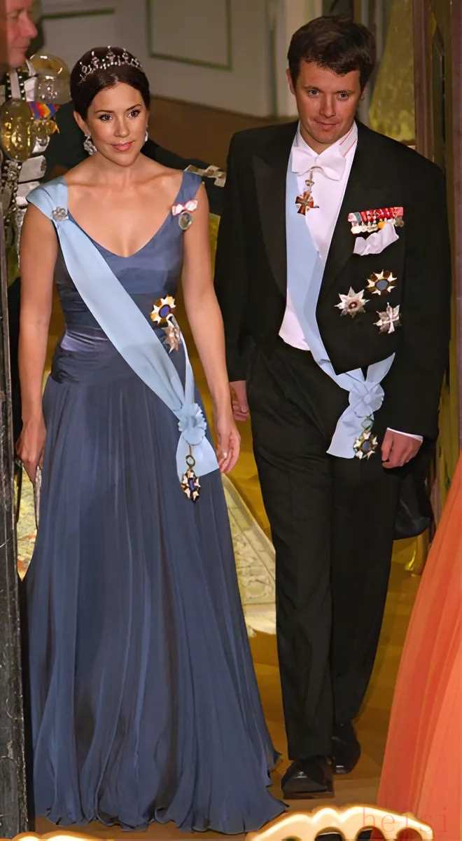 其中有兩個(gè)極具代表性的穿搭實(shí)例:2008 年,瑪麗王妃出席歐洲電影獎(jiǎng)時(shí),選擇將頭發(fā)利落盤(pán)起,打造出優(yōu)雅的發(fā)型,凸顯出整體造型的莊重與精致;2012 年,她身著這套服裝參加丹麥女王登基 40 周年慶典,搭配上奢華的王冠,瞬間增添了隆重感與王室威嚴(yán)。