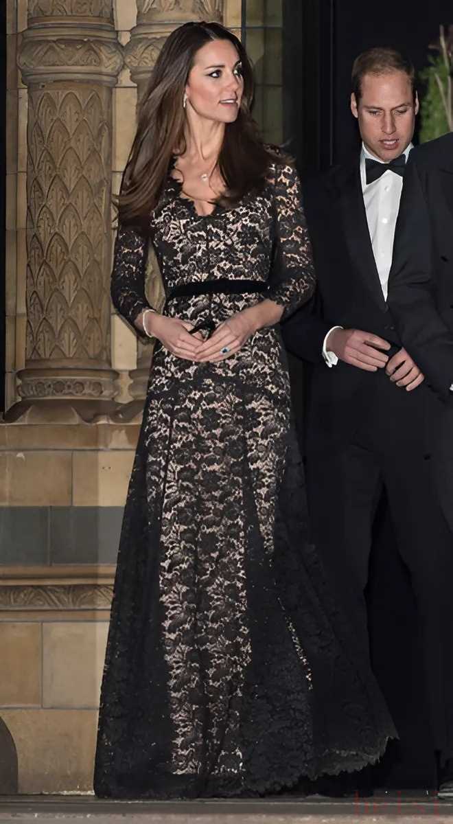 在 2012 年 11 月那次亮相整整一年之后,公爵夫人再次選擇了這件連衣裙,穿著它出席了倫敦的一場(chǎng)慈善晚宴。重復(fù)穿著這件連衣裙,不僅體現(xiàn)了實(shí)用性和理性消費(fèi)的理念,也證明了它在各種莊重場(chǎng)合的通用性。