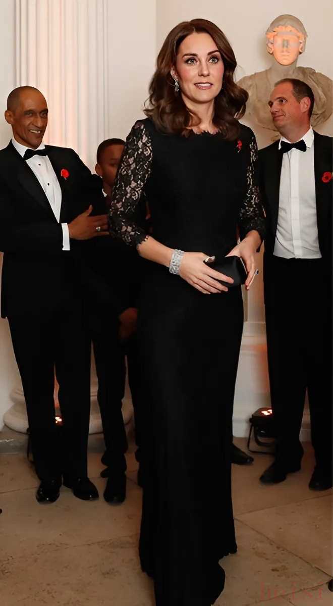 劍橋公爵夫人很好地展示了如何在重要場(chǎng)合重復(fù)穿著服裝。黛安?馮?弗斯滕伯格品牌的黑色蕾絲連衣裙原本是為孕婦設(shè)計(jì)的,2017 年,它再次出現(xiàn)在凱特(劍橋公爵夫人)那華麗的王室衣櫥搭配中。