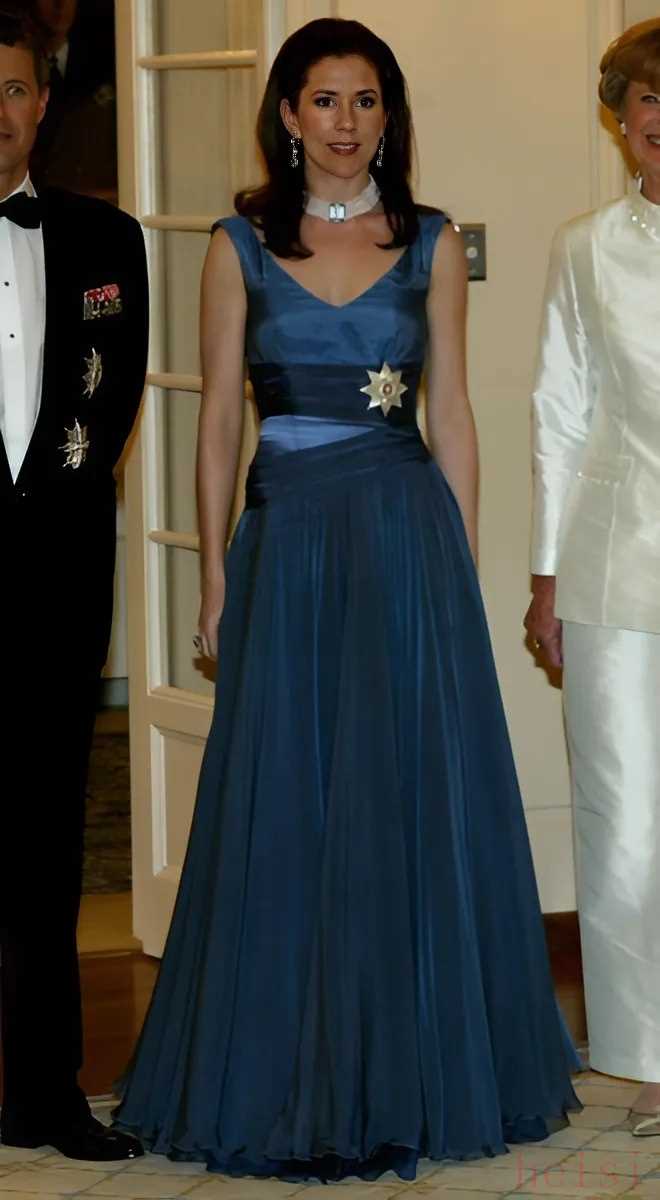 2007 年,這件衣服又一次重要登場(chǎng)。那次,瑪麗選擇穿著它出席為紀(jì)念巴西總統(tǒng)而舉辦的宴會(huì),這也進(jìn)一步凸顯了這件衣服在她衣櫥里作為莊重禮服的重要地位。
