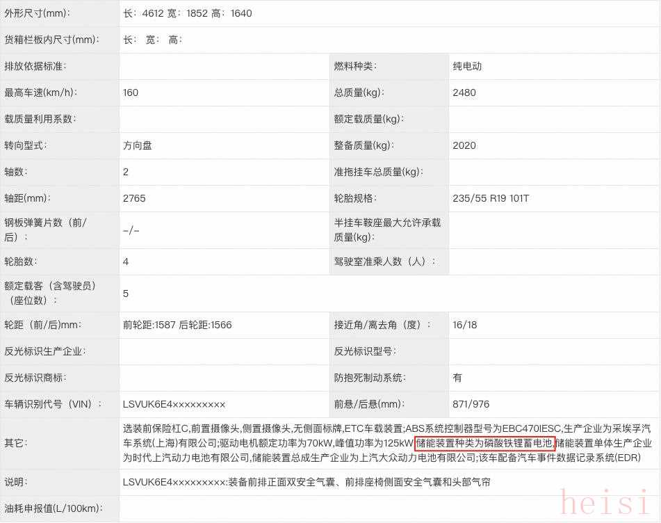 上汽大眾ID.4 X磷酸鐵鋰版申報(bào)圖
