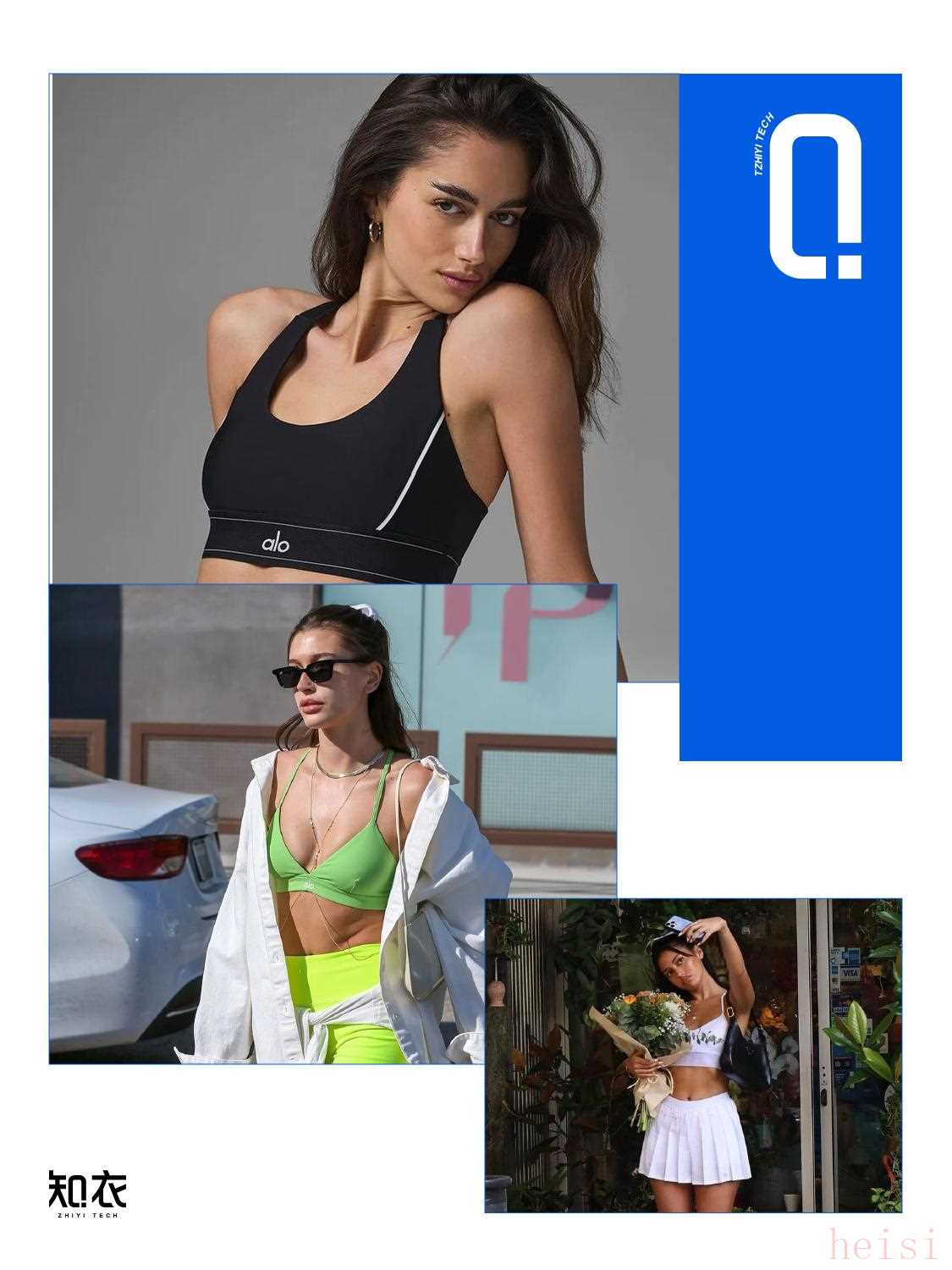 1?? 服裝設(shè)計:Alo的服裝設(shè)計具備時尚品牌的水準(zhǔn),超越了傳統(tǒng)瑜伽服品牌。主要通過明線元素和豐富色調(diào)提升運動單品的時尚感,在基礎(chǔ)款市場中打造差異化,實現(xiàn)了從瑜伽室到街頭的「Studio to Street」理念。