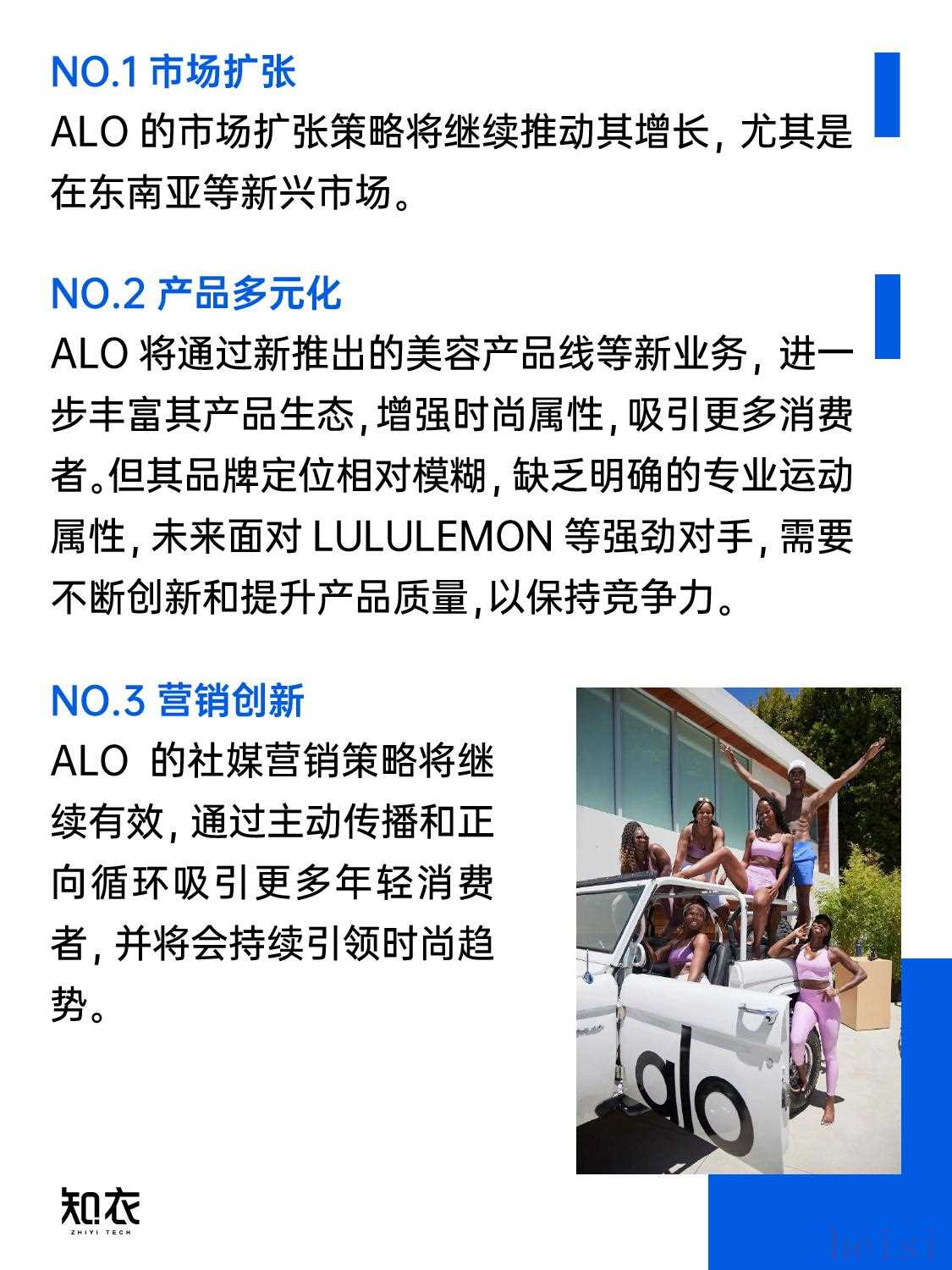 3. "市場策略":Alo可能采取了一系列有效的市場策略,如社交媒體營銷、KOL合作、線下體驗店等,以提升品牌知名度和用戶粘性。